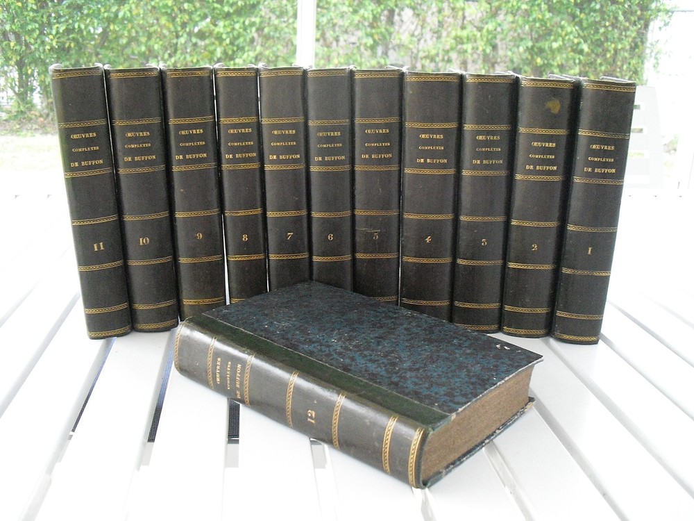 OEUVRES COMPLETES DE BUFFON MISES EN ORDRE, PRECEDEES D'UNE NOTICE SUR LA VIE DE L'AUTEUR, ET SUIVIES D'UN DISCOURS INTITULE: VUE GENERALE DES PROGRES DE PLUSIEURS BRANCHES DES SCIENCES NATURELLES DEPUIS LE MILIEU DU DERNIER SIECLE PAR M. LE COMTE DE LACEPEDE NOUVELLE EDITION ORNEE DE NOUVELLES ET SUPERBES FIGURES PARIS RAPET ET Cie RUE SAINT-ANDRE-DES-ARCS 1817 12 VOL SET LEATHER Leather spine books with some volumes with fold out maps. Boards have slight rubbing, inside pages tight with some stains. Text in French. A very nice set! Thank you for visiting us. Please check our store for more fabulous books on art, history, religion, rare and antique books, leather bound books such as Easton Press and Franklin Library, signed books, first editions, and rare finds available exclusively in this store. International Buyers : We love doing business with you, but please e-mail us before bidding so we can quote you shipping costs. Thank you. Powered by eBay Turbo Lister The free listing tool. List your items fast and easy and manage your active items. inkFrog Analytics