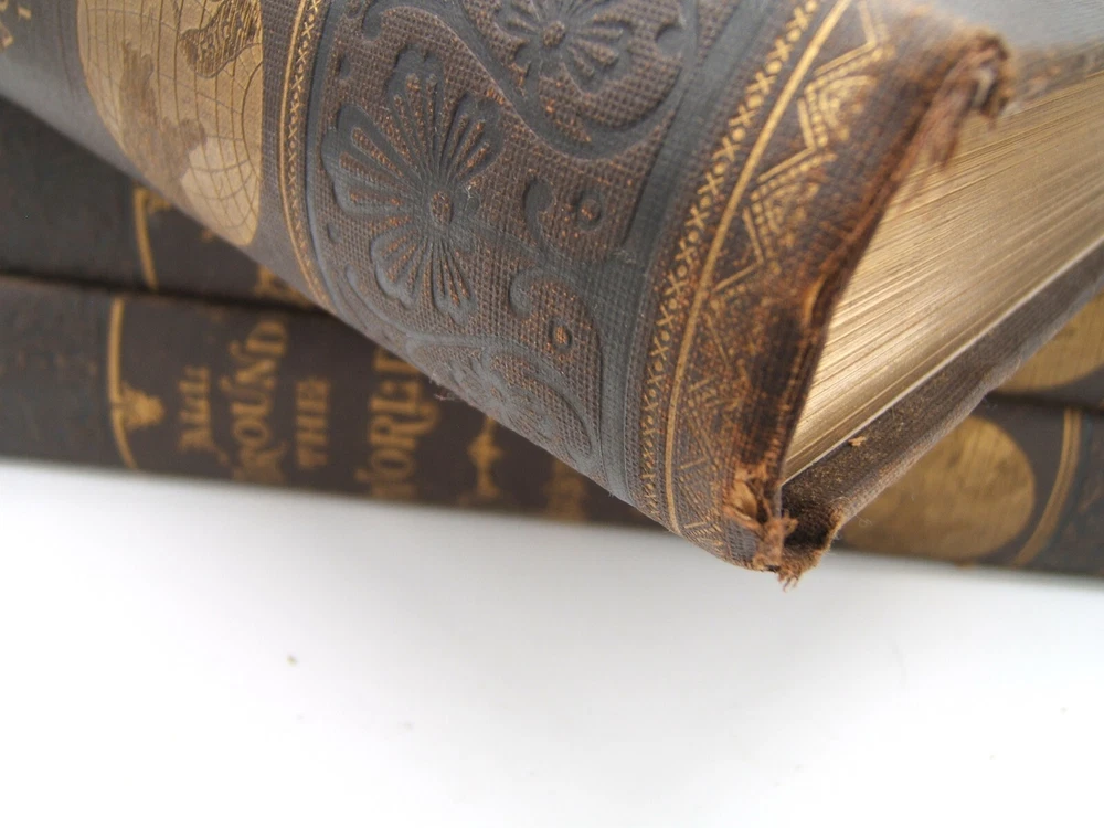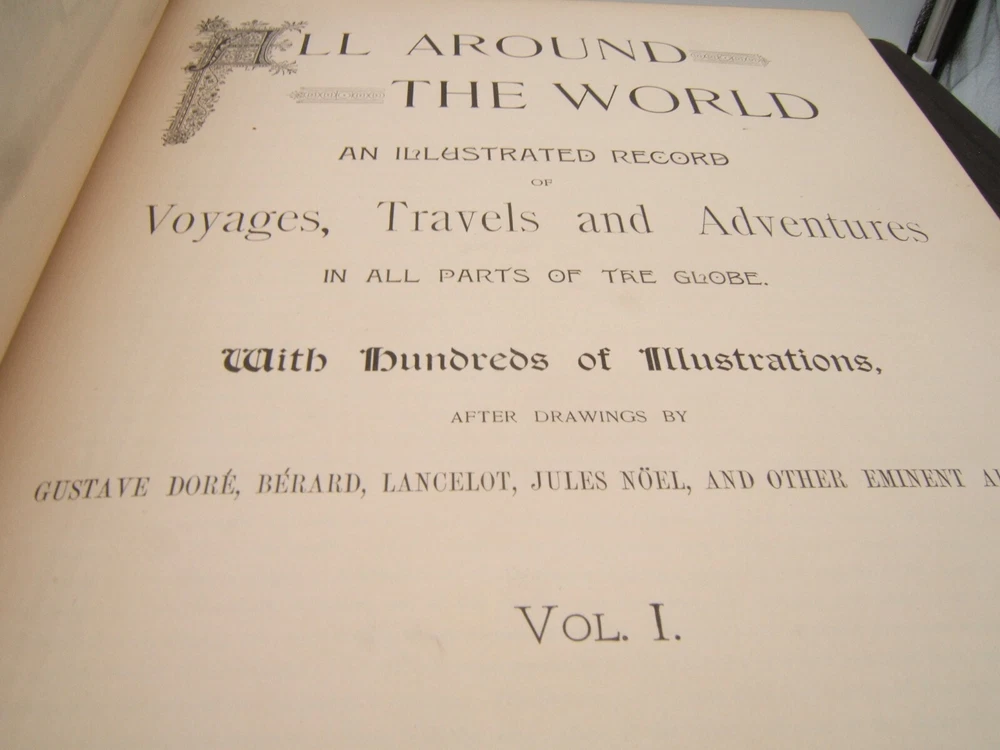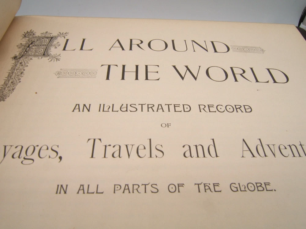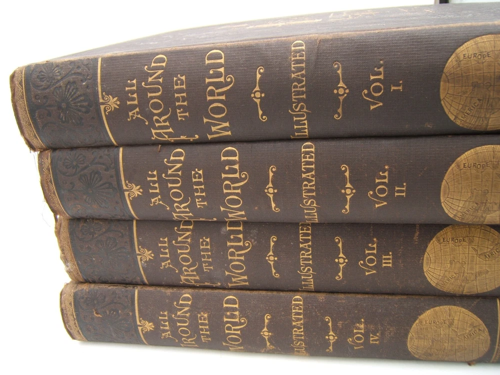 This is an old 4 volume set of the books All Around the World, an illustrated record. The Voyages, travels and adventures in all parts of the world. Edited by W. F. Ainsworth, F.R.G.S.,F.S.A. It has hundreds of illustrations and after drawings. Published by Selmar Hess. There is some wear on the covers, on the corners and Vol 2 has a rip at the top of the spine. Illustrations are intact.