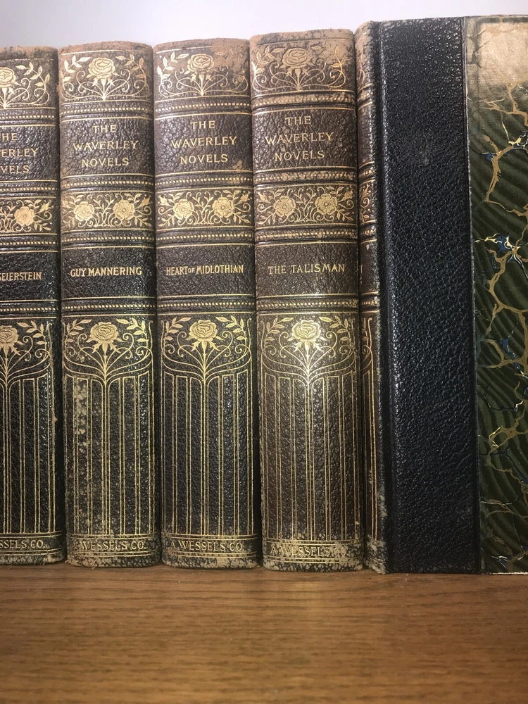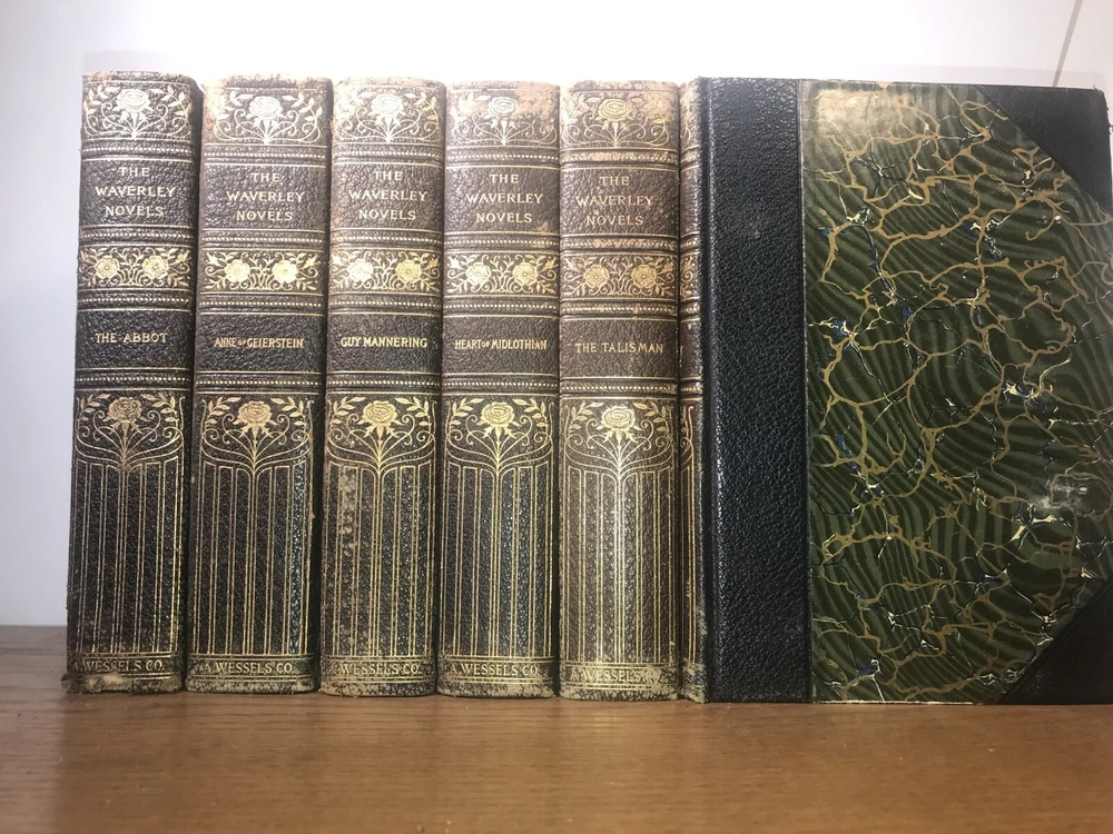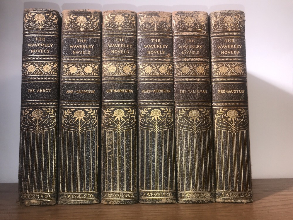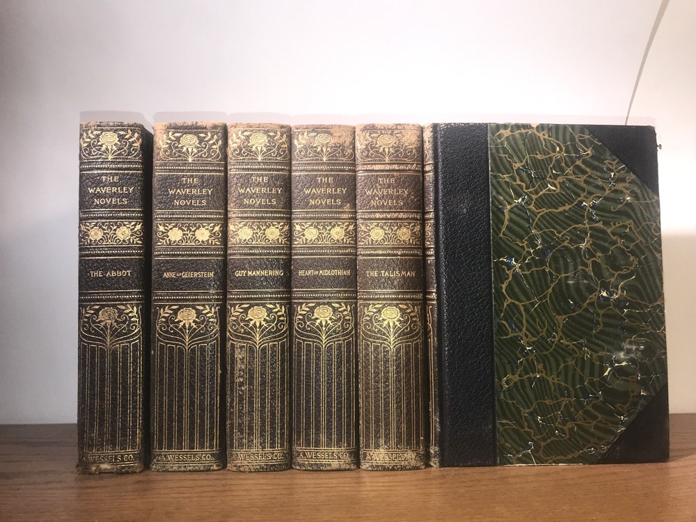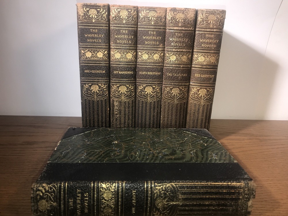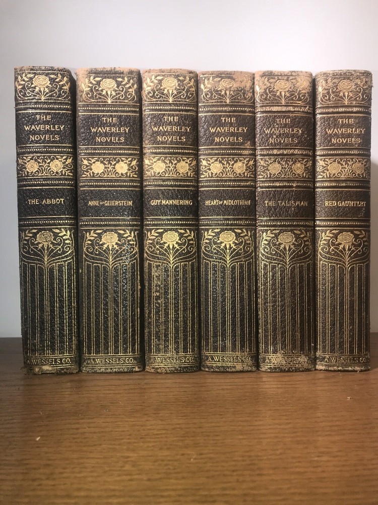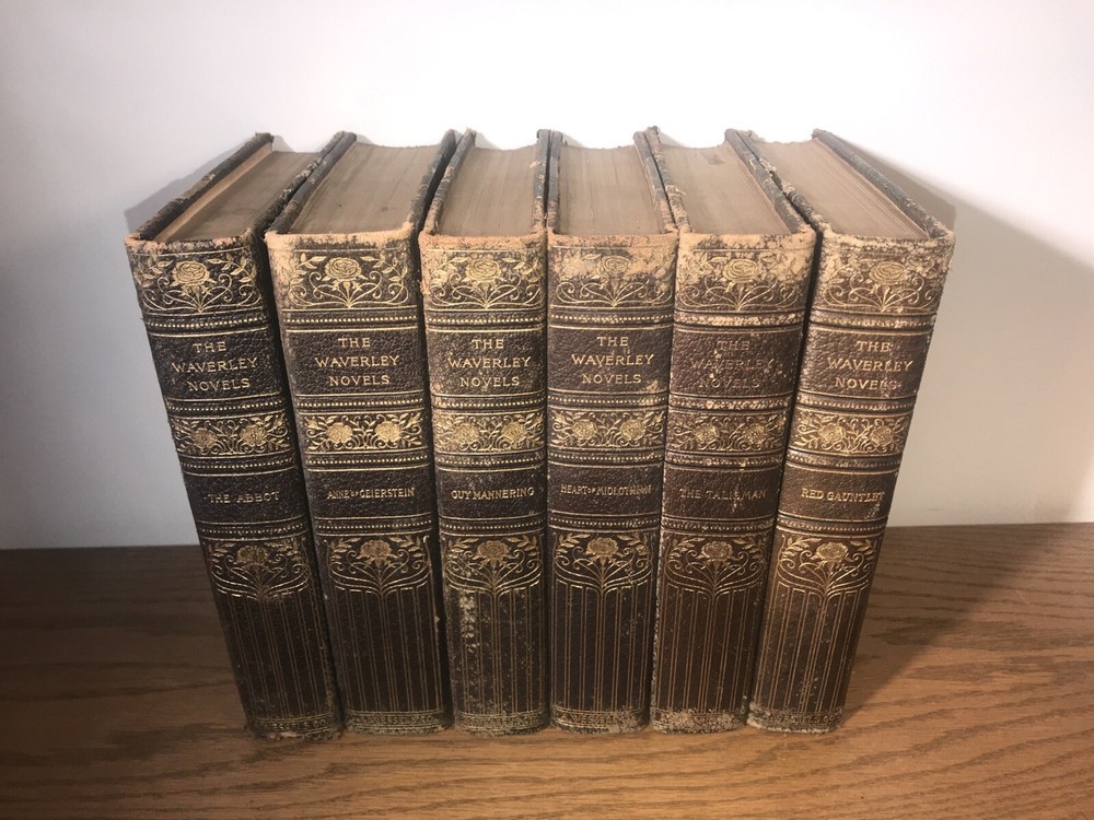 E ach title complete by itself. 6 volumes only. N o indication inside of completeness. Set is not complete. B ound in the original leather bindings. P rinted on rag paper. Well preserved and a pleasure to read. S ir Walter Scott Edition. N o date. Printed circa 1890.