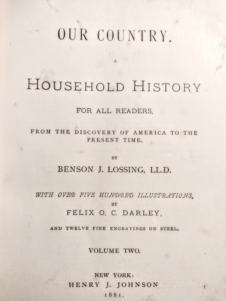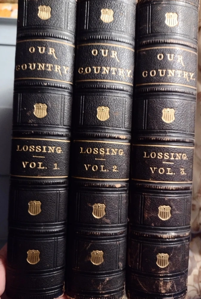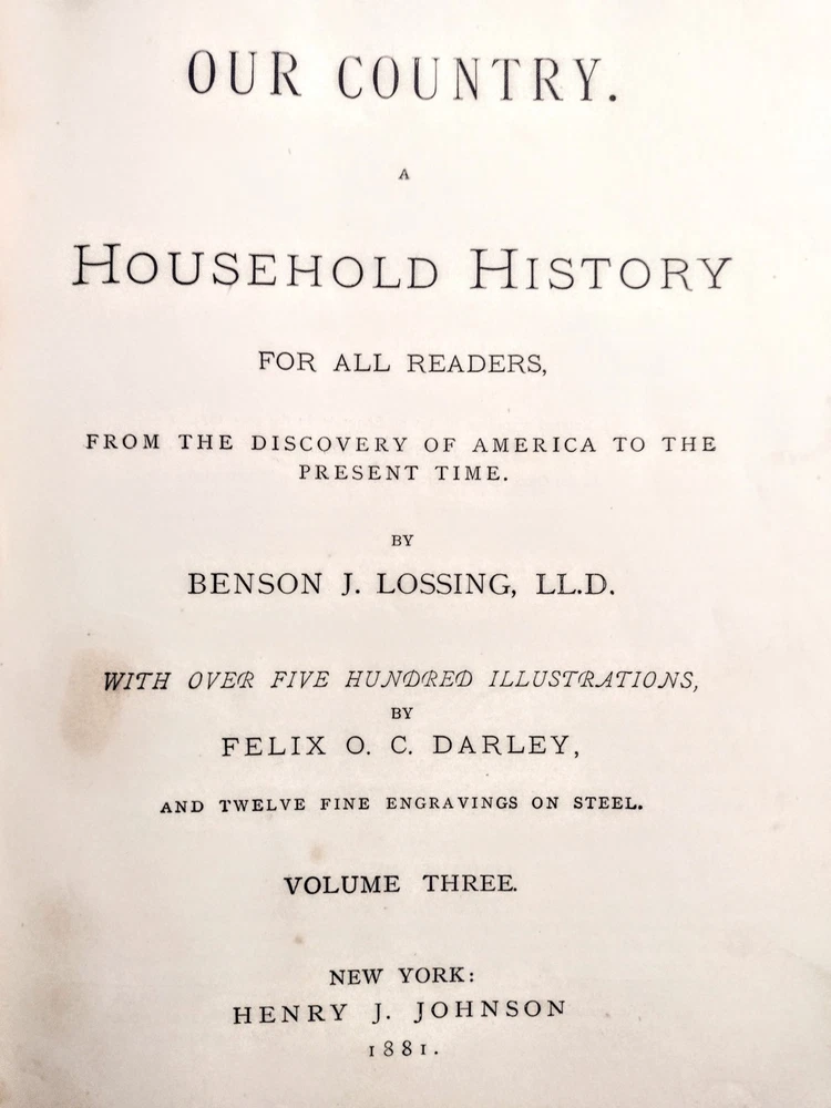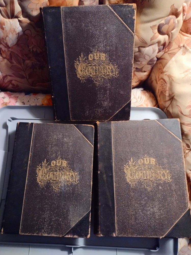 Set of 3 Our Country A Household History For All Readers From The Discovery Of America To The Present Time. Entered to Act of Congress 1877 and published by Henry J. Johnson 1880. All 3 volumes show some cover and corner wear as the photos show. There is some minor fixing on a few pages. One volume has a front liner page ripped out. A rare set of books for your library. Shipped media mail.