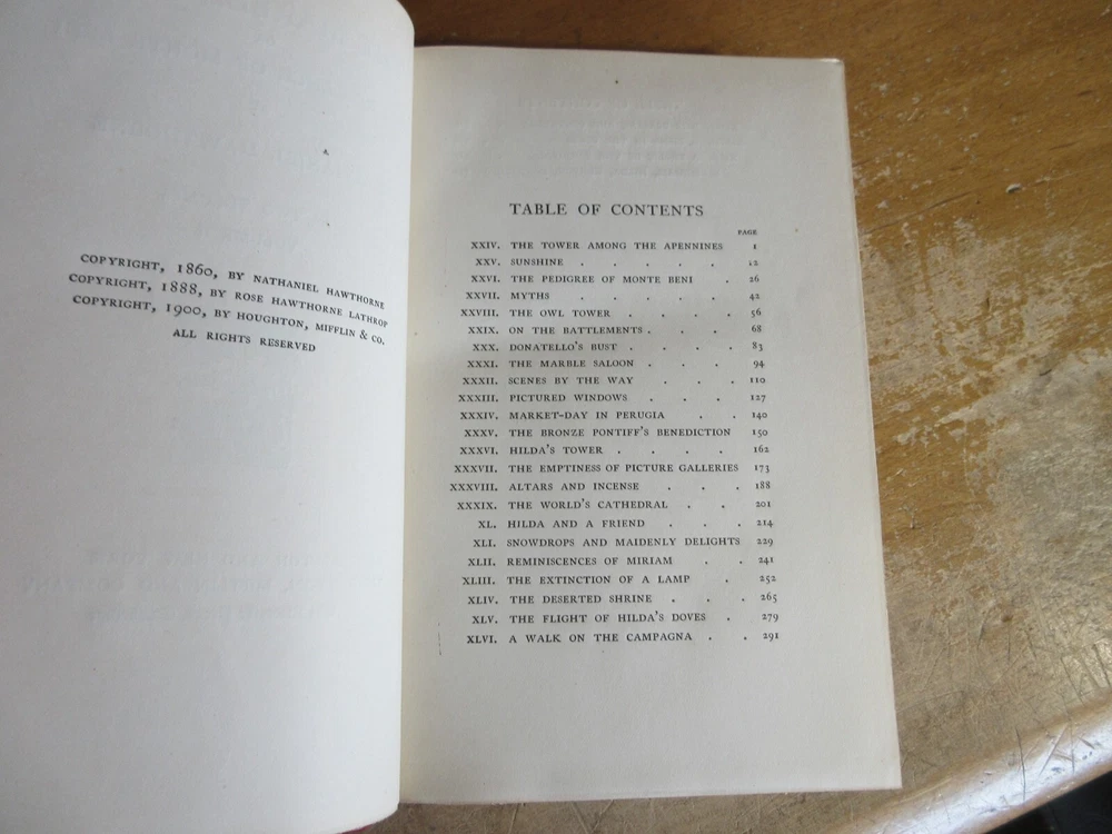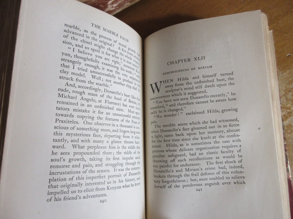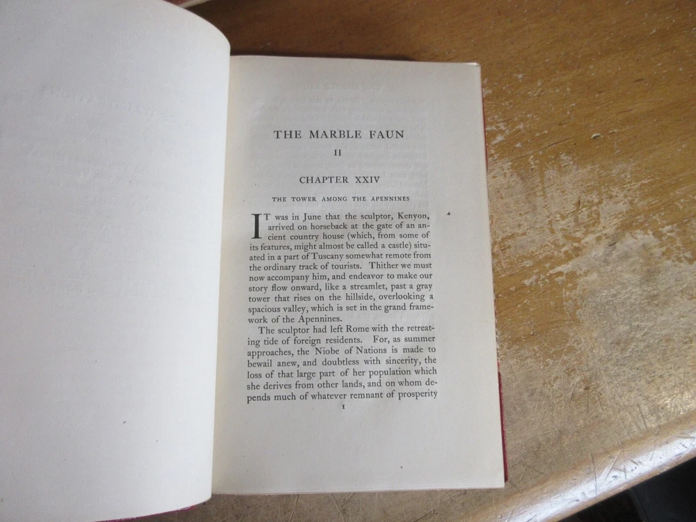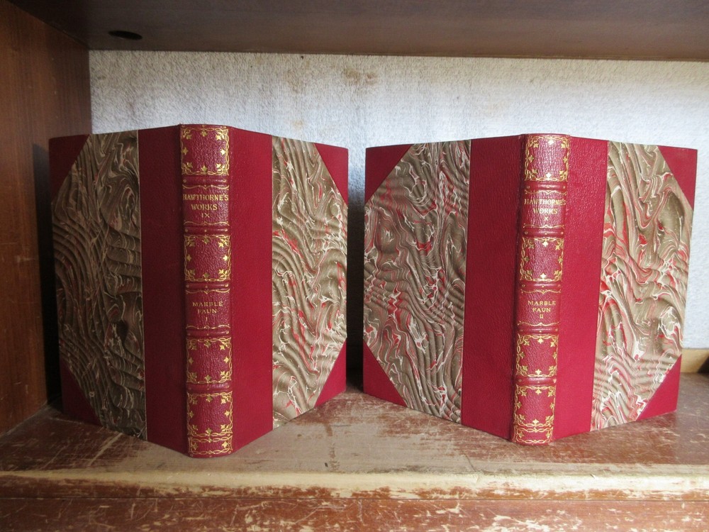 Here is a very interesting and hard to find set of “The Marble Faun or The Romance of Monte Beni” by Nathaniel Hawthorne, in 2 volumes, copyright 1900. These leather bound books are in very good condition, minor cover and spine wear, tight bindings and hinges, pages are fairly clean. Check out some of the interesting contents in these books! They measure approximately 5 ¼” x 8” and contain 294 and 359 pages. A great set for any collection! I will be starting more $.99 book auctions every night. There are many books on medicine, agriculture, manufacturing, illustrated books, maps, American history, ancient history, religion, philosophy, animals, science, etc. I'm happy to combine shipping. Be sure to check out my other items!!