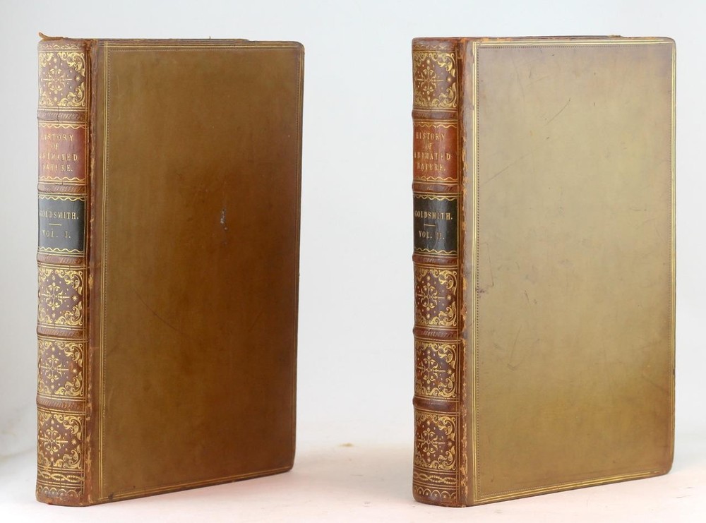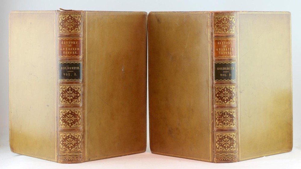 Leather. Large 8vo. A. Fullerton and Co, London, Edinburgh, and Dublin, UK. 1853. liv, 536 pages + hand-coloured plates. 2 volumes. Contains 6 parts. 72 hand-coloured plates. Bound in full ruled calf leather boards with titles present to the spine. Boards have light shelf-wear present to the extremities. Marble endpapers. Bookplate present to the front pastedown. Text is clean and free of marks. Binding tight and solid. "Goldsmith is now writing a Natural History, and he will make it as entertaining as a Persian tale" (Dr. Johnson) First published in 1774, the last year of Goldsmith's life, this new edition is with "an Introductory View of the Animal Kingdom, Translated from the French of Baron Cuvier, and Copius Notes Embracing Accounts of New Discoveries in Natural History; A Life of the author, by Washington Irving;." "The art which Goldsmith eminently possessed of saying every thing he had to say in a pleasing manner, - the fascinating ease and beauty of his style, - and the simple and intelligible arrangement which he adopted, - secured for his work an extensive and steady patronage" Oliver Goldsmith Leather 2 Volumes 1853 A History of the Earth & Animated Nature Oliver Goldsmith Leather 2 Volumes 1853 A History of the Earth & Animated Nature Description Up For Sale Today is A History Of The Earth And Animated Nature by Oliver Goldsmith With Numerous Notes, From The Works Of The Most Distinguished British And Foreign Naturalists And Copious Notes Embracing Accounts of New Discoveries in Natural History A Life of the Author by Washington Irving and A Carefully Prepared Index to the Whole Work Leather. Large 8vo. A. Fullerton and Co, London, Edinburgh, and Dublin, UK. 1853. liv, 536 pages + hand-coloured plates. 2 volumes. Contains 6 parts. 72 hand-coloured plates. Bound in full ruled calf leather boards with titles present to the spine. Boards have light shelf-wear present to the extremities. Marble endpapers. Bookplate present to the front pastedown. Text is clean and free of marks. Binding tight and solid. "Goldsmith is now writing a Natural History, and he will make it as entertaining as a Persian tale" (Dr. Johnson) First published in 1774, the last year of Goldsmith's life, this new edition is with "an Introductory View of the Animal Kingdom, Translated from the French of Baron Cuvier, and Copius Notes Embracing Accounts of New Discoveries in Natural History; A Life of the author, by Washington Irving;." "The art which Goldsmith eminently possessed of saying every thing he had to say in a pleasing manner, - the fascinating ease and beauty of his style, - and the simple and intelligible arrangement which he adopted, - secured for his work an extensive and steady patronage" Part I. History of the Earth. Part II. History of Quadrupedes Part III. History of Birds. Part IV. History of Fishes. Part V. History of Frogs, Lizards and Serpents. Part VI. History of Insects. OUR MISSION STATEMENT: Our goal is to provide the best books for the lowest prices. We understand that you have more choices than ever to buy books, so we strive to provide the best service, accurate descriptions, the cheapest shipping and the best customer service in the realm of bookselling. Thank you for visiting this listing and we hope to see you again soon! Book formats and corresponding sizes Name Abbreviations Leaves Pages Approximate cover size (width × height) inches cm folio 2º or fo 2 4 12 × 19 30.5 × 48 quarto 4º or 4to 4 8 9½ × 12 24 × 30.5 octavo 8º or 8vo 8 16 6 × 9 15 × 23 duodecimo or twelvemo 12º or 12mo 12 24 5 × 7⅜ 12.5 × 19 sextodecimo or sixteenmo 16º or 16mo 16 32 4 × 6¾ 10 × 17 octodecimo or eighteenmo 18º or 18mo 18 36 4 × 6½ 10 × 16.5 trigesimo-secundo or thirty-twomo 32º or 32mo 32 64 3½ × 5½ 9 × 14 quadragesimo-octavo or forty-eightmo 48º or 48mo 48 96 2½ × 4 6.5 × 10 sexagesimo-quarto or sixty-fourmo 64º or 64mo 64 128 2 × 3 5 × 7.5 ALL ITEMS ARE DESCRIBED TO THE BEST OF MY ABILITY! PLEASE CHECK ALL THE PHOTOS BEFORE BIDDING! ALL ITEMS ARE WRAPPED IN 2 LAYERS OF BUBBLE WRAP AND THEN PLACED INTO A CUSTOM FITTED CARDBOARD MAILER. IF YOU WIN A LARGE NUMBER OF BOOKS OR A SET THE ITEMS WILL BE SHIPPED IN A STURDY BOX. IF YOU DO WIN MULTIPLE ITEMS PLEASE DO NOT PAY FOR THEM INDIVIDUALLY! PAYMENT IS DUE WITHIN SEVEN (7) DAYS OF THE INVOICE! Import duties, taxes and charges are not included in the item price. These charges are the buyer's responsibility. Please check with your country's customs office to determine what these additional costs will be prior to bidding/buying. These charges are typically collected by the delivering freight (shipping) company or when you pick the item up. We do not mark merchandise values below value or mark items as "gifts" as US and International government regulations prohibit such behavior. (This is a felony in the United States) FREE DOMESTIC (MEDIA MAIL) FREIGHT ON ALL ITEMS! 300+ Listing Templates! Auctiva gets you noticed! The complete eBay Selling Solution. Track Page Views With Auctiva's Counter