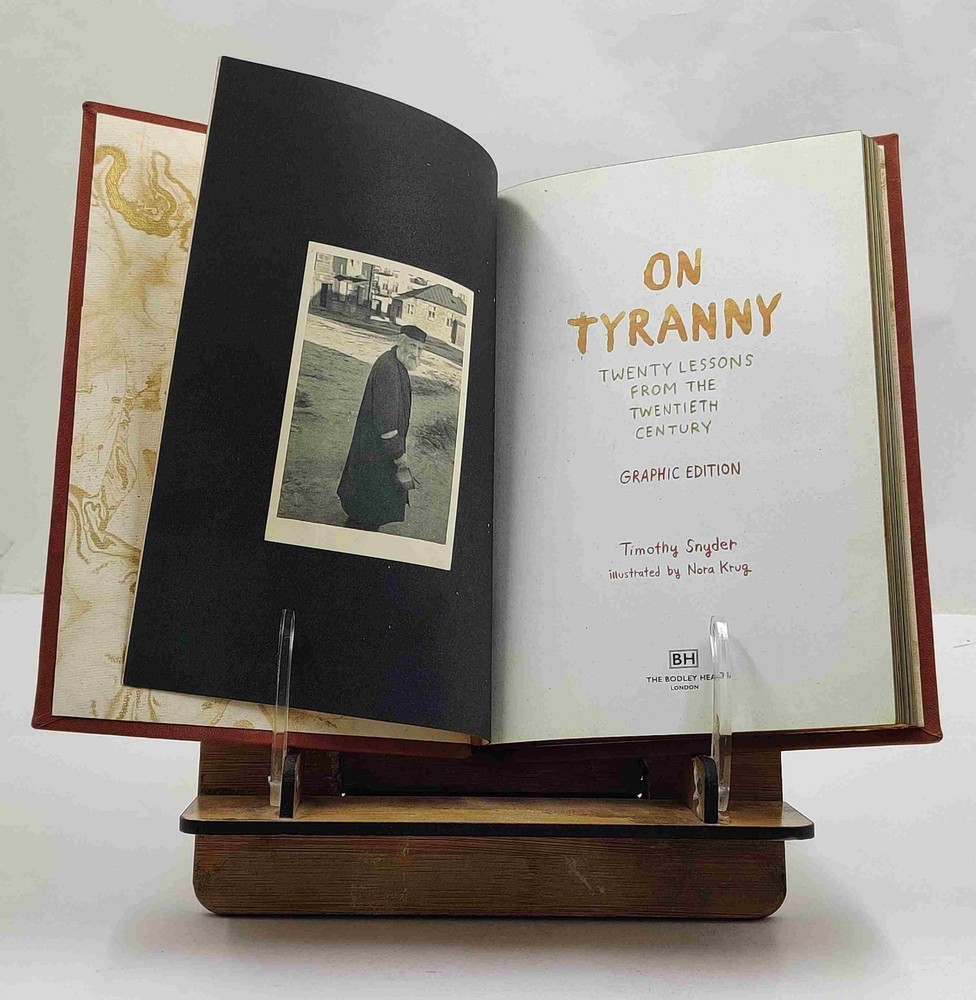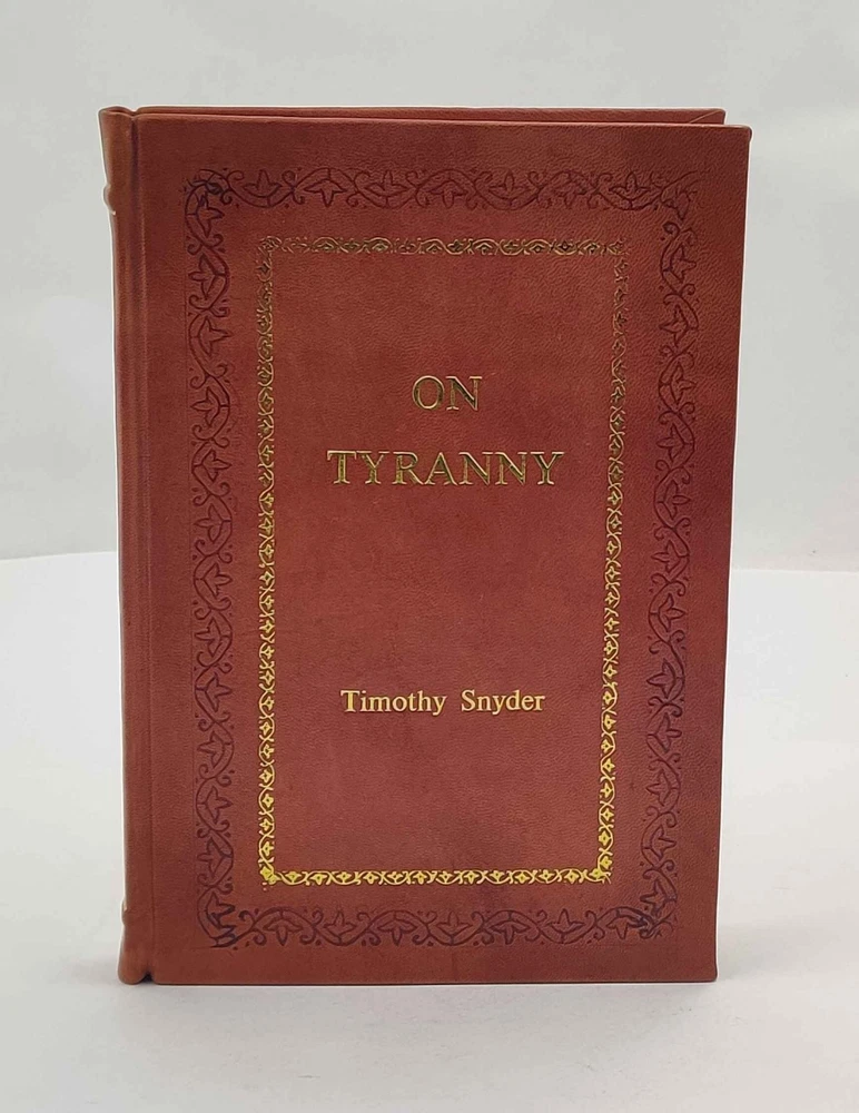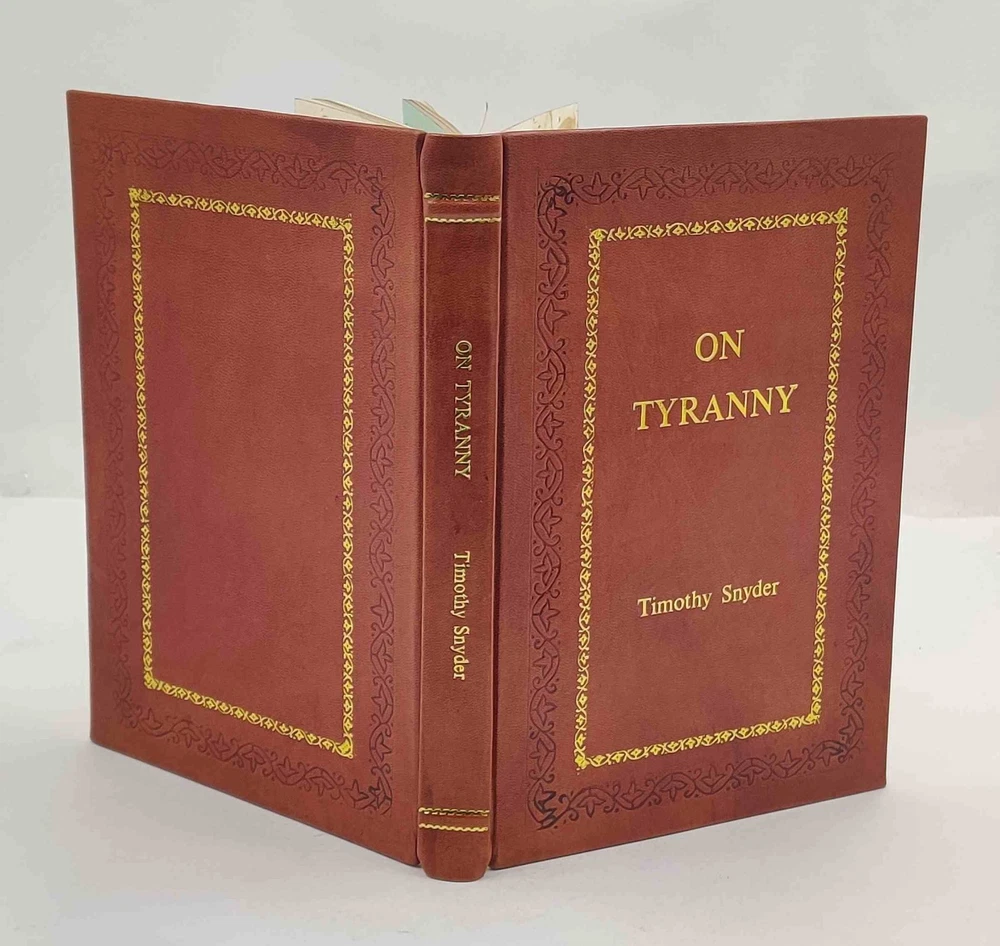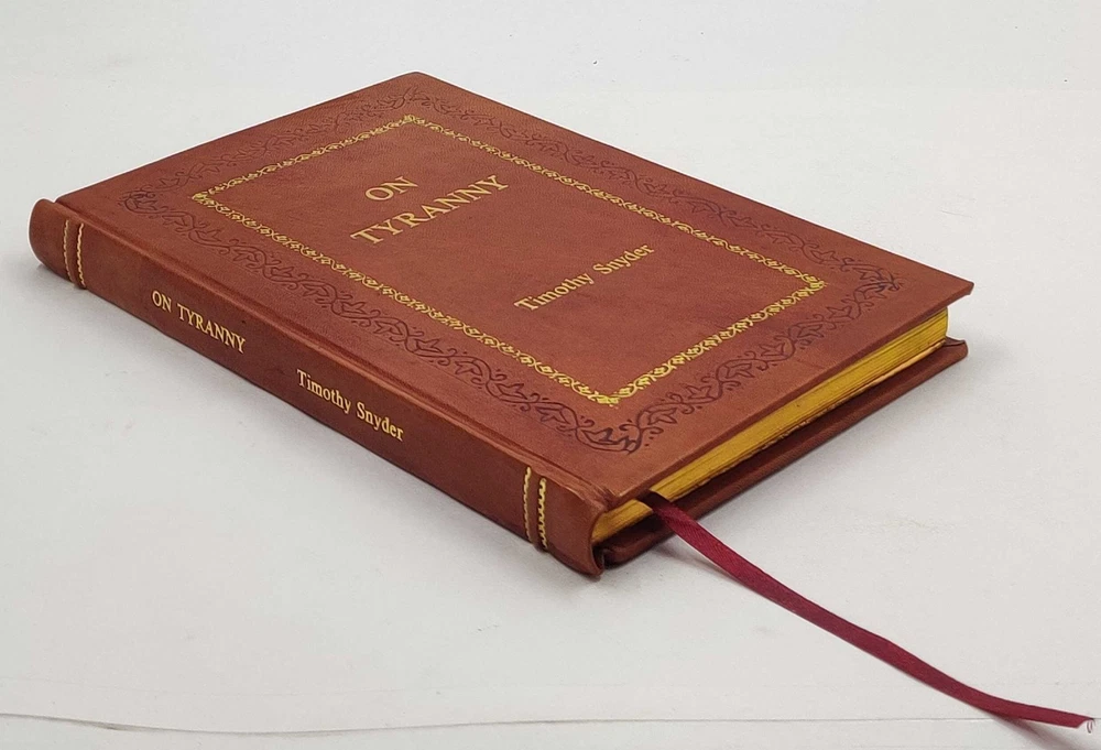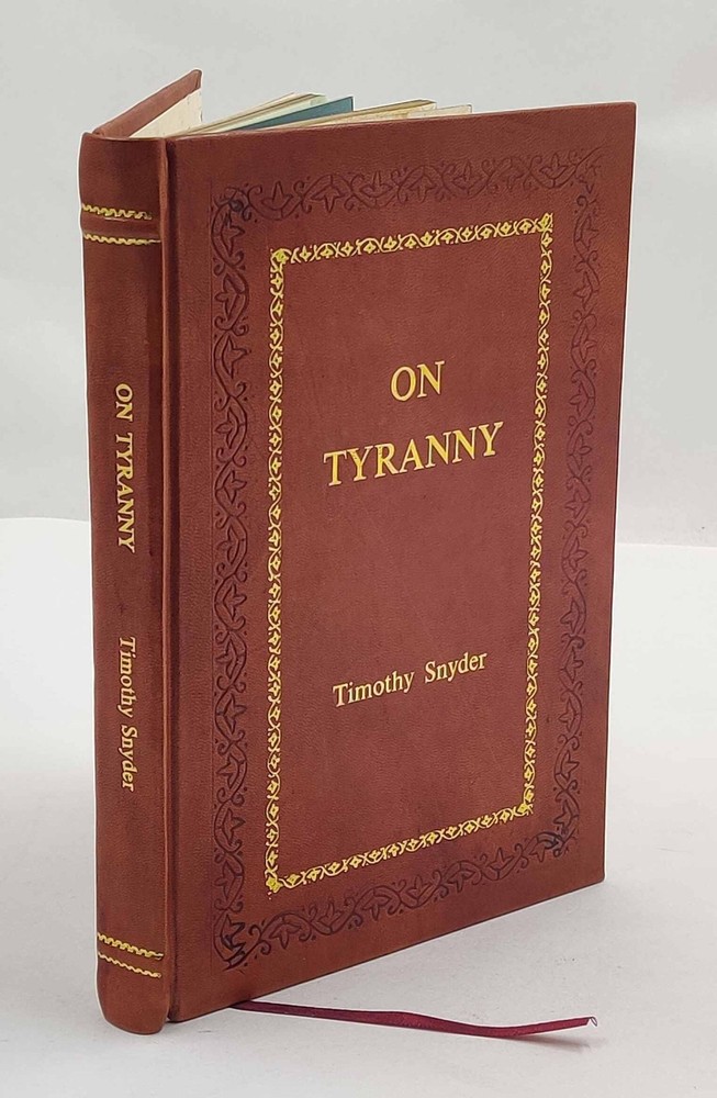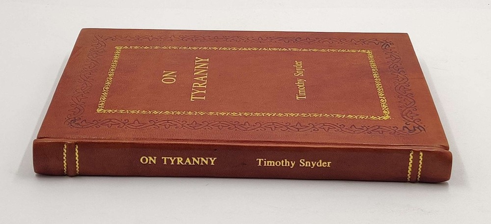 Note: This is not a reprint. The original paperback or hardcover edition has been purchased directly from the authorized distributor or publisher. The book purchased has been carefully bound in genuine leather to enhance its durability and extend its shelf life. Please be assured that no content or pages have been altered or reformatted during the leather binding process. Product Information: - Title of Product:On Tyranny Graphic Edition: Twenty Lessons from the Twentieth Century [PREMIUM LEATHER BOUND] Author: Snyder, Timothy Number of Pages: 128 Publication Year: 2021 Language: English Book Synopsis: - NEW YORK TIMES BESTSELLER - A graphic edition of historian Timothy Snyder's lessons for surviving and resisting America's arc toward authoritarianism, featuring the visual storytelling talents of renowned illustrator Nora Krug "Nora Krug has visualized and rendered some of the most valuable lessons of the twentieth century, which will serve all citizens as we shape the future."--Shepard Fairey, artist and activist Timothy Snyder's New York Times bestseller On Tyranny uses the darkest moments in twentieth-century history, from Nazism to Communism, to teach twenty lessons on resisting modern-day authoritarianism. Among the twenty include a warning to be aware of how symbols used today could affect tomorrow ("4: Take responsibility for the face of the world"), an urgent reminder to research everything for yourself and to the fullest extent ("11: Investigate"), a point to use personalized and individualized speech rather than clichd phrases for the sake of mass appeal ("9: Be kind to our language"), and more. In this graphic edition, Nora Krug draws from her highly inventive art style in Belonging--at once a graphic memoir, collage-style scrapbook, historical narrative, and trove of memories--to breathe new life, color, and power into Snyder's riveting historical references, turning a quick-read pocket guide of lessons into a visually striking rumination. In a time of great uncertainty and instability, this edition of On Tyranny emphasizes the importance of being active, conscious, and deliberate participants in resistance. Product Description: This exquisite book is crafted exclusively for discerning readers and collectors who seek to elevate and preserve their literary treasures. Bound in GENUINE LEATHER, it showcases the finest craftsmanship with luxurious GOLDEN LEAF DETAILING adorning the spine, front cover, and back cover. The elegance is further enhanced by EDGE GILDING, giving the book an opulent finish. Customize Your Leather-Bound Edition with Color Options: - 1. Select from a wide array of leather colors at no additional cost. Share your preferred leather color with us via email. 2. Choose from a diverse range of leather colors with colored marbles (endpaper), including Brown, Crimson Red, Forest Green, Royal Blue, Rich Black, Hot Pink, Yellow, And Tan . 3. For a truly unique touch, request Multi-Color Labels to complement your custom leather-bound book spine. 4. Own a timeless masterpiece that adds sophistication to any collection! Artisan Quality and Dispatch Information: - ● We appreciate your understanding that these Leather-Bound Books are meticulously crafted works of art, requiring significant time and attention to detail to achieve their exceptional quality. ● Our standard handling time for dispatch is 35 business days, as each book undergoes various stages of production. However, we do accommodate special & requests for specific occasions. ● We offer additional customization options upon request, subject to extra charges. Additionally, we handle both printing and leather binding for all books. ● Product Disclaimer : Please note that as Leather is a Natural Material, minor variations in color or texture may occur.