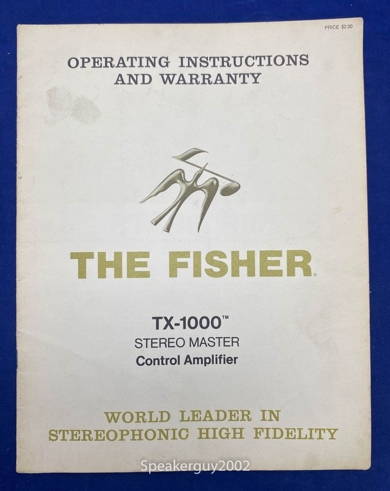Fisher Manual This listing is for original Fisher Manual. It is not a PDF or Copy. Make: Fisher Model: TX-1000 Type: Operation Manual Thanks for looking!!!