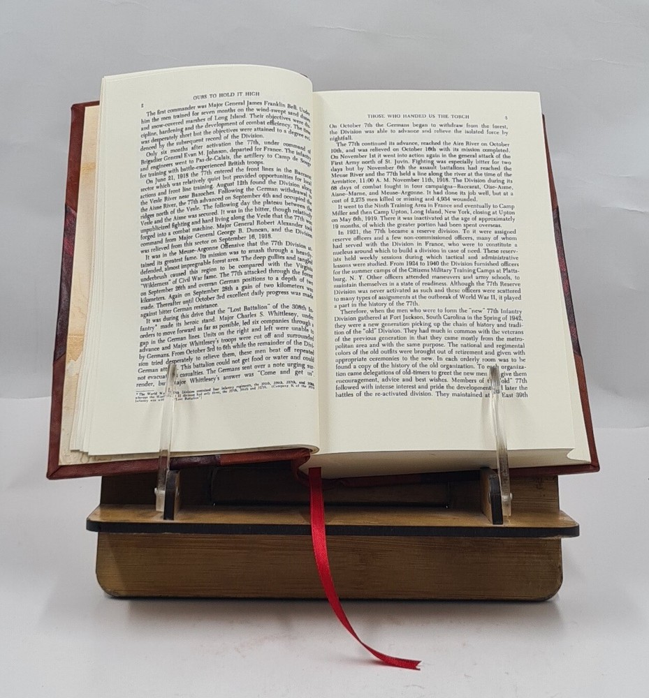 About the Book: Complete Title: Ours To Hold It High The History Of The 77th Infantry Division In World War II 1947 [Leather Bound] Author: Anonymous Edition: Reprinted by Gyan Books in 2018 with the help of original edition published long back [1947] . Language: English No. Of Pages: 609 Binding: HALF LEATHER binding features a leather spine and corners with the remaining cover in Raxine or Marble Paper. Note for customer: [Description Please Note:-2 Pages Text Destroyed] CHOOSE ANY LEATHER COLOR OF YOUR CHOICE WITHOUT ANY EXTRA CHARGES JUST CLICK ON IMAGES FOR OPTIONAL COLORS AND INFORM US YOUR CHOICE THROUGH MAIL WITH COLOR CODE. Customization Options Available Upon Request We provide 'Extra customization*' on request with additional charges. Please note that customization charges are applied in addition to the listed item (Book) price. Customization Extra Charges Sample Image FULL LEATHER BOUND WITH GILDED EDGES (ANY COLOR) USD 35 MULTI-COLOR LABELS (Spine) USD 12 PERSONALIZED IMAGE EMBOSSING ON THE FRONT COVER USD 40 FOLIO EDITION (12x18.5 inches) BIGGER SIZE Six times of the given price Points to note before booking order: SPECIAL DISCOUNT FOR BULK ORDERS PLEASE CONTACT US. UNIQUE LEATHER-BOUND Edition on Spine and Corners along with Golden Leaf Printing on Round Spine. This book is: Printed in Black & White (If a color edition is available you may request it by mail for a nominal charge.) Sewed binding for longer life Printed on high quality Natural Shade Acid Free Paper Professionally processed without changing its content Genuine Leather is being used for Binding Handcrafted Golden Leaf Printing. Round Spine Handmade Marble paper use for end paper Raise bands Bookmark Ribbon As these are old books each page is processed manually to make them readable. But in case some pages are blur or missing or have black spots the same are re-printed as it is to keep the authenticity of the book. In case of multi volume sets please note that the above listing is for a single volume only. (To order multiple volumes please contact us separately). We request you to understand that these leather-bound books are work of art and hence require time to go through different process to be the masterpieces that they are. We usually take 20 business days as handling time to dispatch shipment. We consider special request for a special occasion. Craftsman based in India prepared this book and shipped from different stock locations around the Globe. PRODUCT DISCLAIMER: Please be aware that because leather is a natural material slight discoloration or change in texture may be visible. ABOUT US GYAN BOOKS INTRODUCING A REMARKABLE LEATHER-BOUND EDITION, METICULOUSLY CRAFTED BY THE ESTEEMED INSTITUTION: RARE BIBLIO A UNIQUE LEATHER-BOUND BOOK FOR ELITE READERS/COLLECTORS OF OLD RARE AND BESTSELLING BOOKS. An ORIGINAL LEATHER is being used for Binding this Book on SPINE AND CORNERS along with GOLDEN LEAF PRINTING {Half Leather}. We deal into reprinting of the masterpieces crafted by authors around the world. We are proud to say that we have a collection of over 25 million books and our collection includes books that are as old as 200 years and hence are considered as RARE BOOKS. We are pioneer in this field having experience of 40 years. We also undertake printing and Leather Binding jobs of other books. Thesis printing and Leather Binding is one of our important services. Many publishers and authors approach us for their books to bind in our unique leather binding format for their special customers. Our craftsmen are active in this job since generations. Restoration of old books is our expertise. We are known by our Customization options. We have many leather color options in our bucket. The whole process is done manually so that it gives you the same feeling of old book.