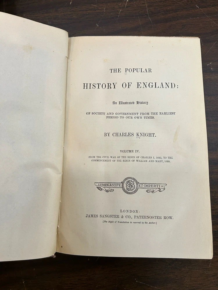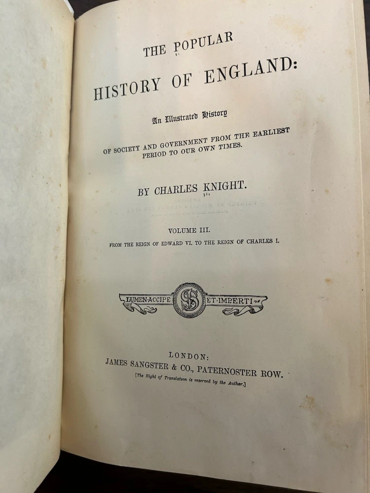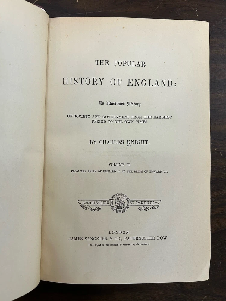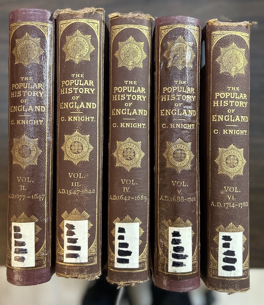 The "POPULAR HISTORY OF ENGLAND" by Charles Knight consists of volumes 2-6, each illustrated and bound in leather. Published in 1856 in London by Sangster Co. and Paternoster Row, these books are part of a series focusing on the history of England, specifically in Europe. The set of 5 books is in English and carries the special attribute of being ex-library copies.