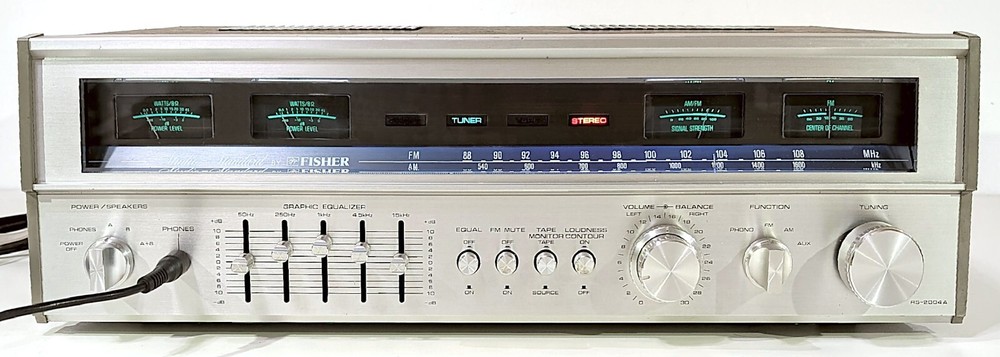 Since 1999 Thanks for viewing our listing, please read all the information given! We do our best to honestly and accurately describe all items, but we are only human and it is possible that we may make oversights or errors. If there is any doubt, or contradicting information, please ask first before buying or making an offer. We ask that all our buyers give us the chance to discuss any issues. ~~~ By buying this item, or making a Best Offer, you agree to contact us before leaving less than positive feedback, any rating less than 5, or starting a return. ~~~ CLICK HERE TO CONTACT US WITH ANY QUESTIONS OR CONCERNS This listing is for a lightly-used, vintage Stereo AM/FM Receiver made by Fisher! PROFESSIONALLY SERVICED, TESTED & GUARANTEED! ~ Includes Transistor, Capacitor & FULL LED Upgrade w Socket Modification , NEW FM Dipole Antenna & FREE Allstate 1-Year Protection Plan ! INCLUDES FREE SUPPORT & 60-DAY FREE RETURN / REPAIR / EXCHANGE !!** Free LED COLOR CHANGE on Request! Just let us know BEFORE YOU BUY or OFFER and we will switch the current Green Meter color to Blue , AT NO CHARGE! See what our previous refurb customers had to say! NICE MACHINE!!!!! A+++++ 5 gold star e-bayer all the way Thanks Great seller! Brilliant refurbishing job on an old relic from the 1990s! Fantastic - Went above & beyond to make sure everything was right - yay! Arrived in time and well packed. Great condition and great sound, as described. Awesome amp, shipped very quickly! Also, EPIC packing! Great Ebay seller! WOW great company! Highly recommended. Great communication and service. well packed, arrived safely, works great, looks awesome. Thank you. Fisher's follow-up to their RS-2004 added more power and dual power VU meters! Released in 1979, the RS-2004A has Fisher's built-in five band Graphic Equalizer making it a perfect choice for the true audiophile! It retailed for $350, that's over $1,600 today! In addition to the defeatable 5-band Equalizer, t he front panel offers a Headphone jack, multi-position Speaker & Function selectors, Concentric Volume & Balance controls and buttons for Tape Monitor, EQ Defeat, FM Muting and a Loudness button that contours the sound dynamics perfectly for low level listening. The manual gives this an "RMS" power rating of 90 Watts, or 45 W/Ch into 8Ω through full spectrum and both channels fully driven. All this with an impressive Total Harmonic Distortion of only 0.09%, far below what the human ear can detect! Remember, these are what audiophiles call "Vintage Watts," from an era where, unlike today, it was a sin to manipulate or elaborate the power ratings! The front panel has a 1/4" Headphone jack while the rear offers two speaker zones, an Aux Input, Tape Loop and a stereo Phono Input with a grounding post for your turntables! It also has multiple antenna terminals, an attached AM Antenna, De-emphasis switch, two AC outlets, switched & unswitched and a power fuse. It weighs in at just under 29 lbs and measures a sizable 14-7/8" x 5-7/8" x 19-1/4" wide! By "The Best, Ltd." policy this item will will be double-boxed for secure shipment. The Free Shipping is for the Lower 48 only, HI & AK must select USPS Priority shipping at checkout! Once shipped, we will give you a courtesy credit back equal to the cost of Lower 48 shipping! We cover insurance & signature on us! We do offer free pick-up for paid items in the Denver metro area. Condition: This rare receiver is in "Very Good" condition with minor signs of use and a nice, bright dial! Aside from a few small scuffs & dings to the veneer, the only other thing worth mentioning is just a few light scuffs to the front panel, most too faint to make out well in the pics. All the original knobs are present & complete, as are the feet and attached AM Antenna & AC cord. The manual has gone missing, but no worries, it's available online or we will send you the PDF file directly on request. A bonus NEW FM Dipole Antenna is included and all comes in the pictured generic box with custom Styrofoam packing. Please do inspect all the pictures thoroughly for actual condition. Service: On inspection, this unit was silent a dark dial, so as with all vintage receivers it went to our tech for servicing. Our tech tracked the issue down to a bad Darlington Power Pack, so to assure a balanced amp, both were replaced, The surrounding circuitry was evaluated and a complete re-build was performed on both channels, including upgrading all caps and transistors! As is common with this model there were signs of over-heating to the poser supply, so it to was completely rebuilt with all transistors and caps upgraded as well! A total of 12 transistors 25 electrolytic capacitors and 2 resistors were upgraded to brand new. high quality parts from Onsemi, Nichicon, Rubycon, etc., no used or NOS components! It's this kind of thoughtful, preventative servicing that makes it smart to buy from a company with an experienced, in-house technician! All the lamps were replaced with long-life LED's! But first our tech did a socket upgrade wo we had more LED's to choose from. We installed Cool Blue LED's in the dial which shine through the best , t hen Green LEDs were chosen for the meters that contrast the dial beautifully. But if you prefer Warm White LED's that shine through the meters with a blue color just let us know BEFORE buying or sending an offer and we will switch it out for you free of charge! All four of the indicator lamps were also upgraded s o you won't have to worry about them either . All vintage receivers receive the following services and much more, all performed by our qualified technician: Lid is removed & unit is inspected to determine if any attempted amateur repairs exist that need to be corrected, or substandard parts that need replacement The exterior, all knobs & plexis are cleaned & detailed While the front panel is removed for cleaning, all attachments are re-glued and dried out foam inserts replaced. All switches & pots are cleaned inter