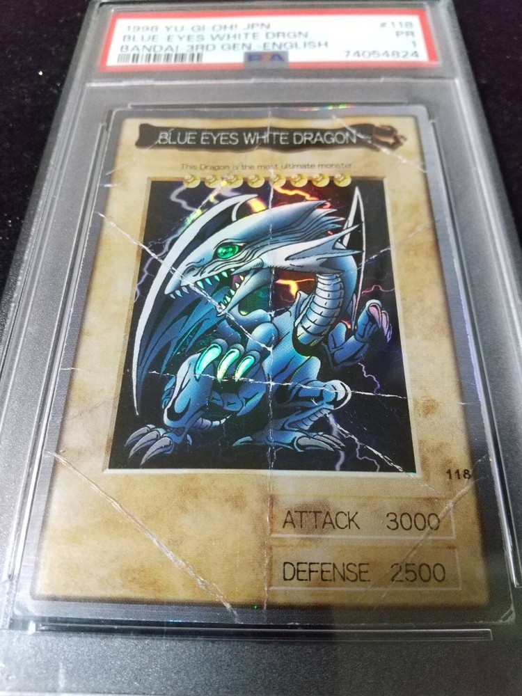 PSA 1 POOR 1998 /1999 Yu-Gi-Oh Bandai Blue-Eyes White Dragon English #118 The damage as shown in the image is characteristic, - Shipping Method: DHL Tracked Shipping, We try to pack carefully and ship quickly. - If you purchase the item at the same time as other items, we can ship it with the shipping fee for one item, so please give us a message before payment. - International Buyers: We welcome international buyers from all over the world. However, please be aware that import duties or taxes are levied in many countries. It is the buyer's responsibility to pay these charges. Check with your country's customs office to see if your country imposes tariffs on imported goods and, if so, what the tax rate is. Payment of customs duties,customs fee, import taxes is the buyer's responsibility. The standard shipping method is DHL Express Tracked Shipping, but we may use other carriers with tracking. Thanks for watching