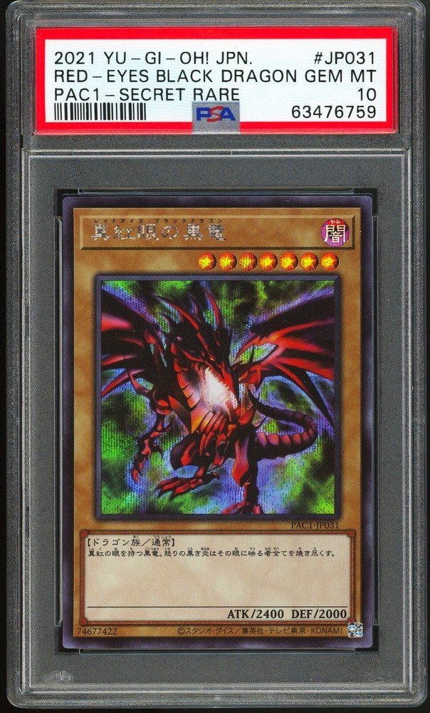 PSA 10 - 2021 YU-GI-OH! JPN PRISMATIC ART COLLECTION 1 - RED EYES BLACK DRAGON - SECRET RARE #JP031 Registered Postage from Australia