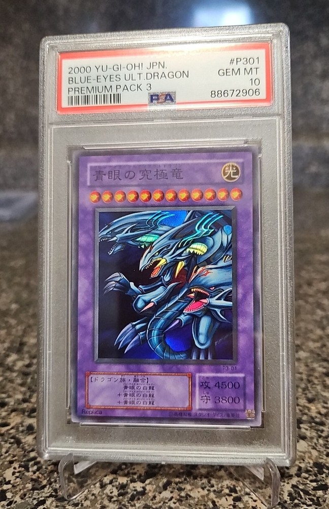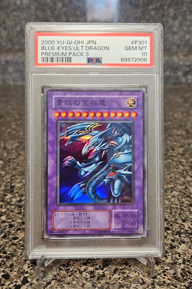 Psa 10 Gem Mint Blue Eyes Ultimate Dragon P3-01 from the Yu-Gi-Oh! TCG 2000 Premium Pack 3, population of 58! Card will ship with a graded card sleeve and bubble wrap for safe shipping!