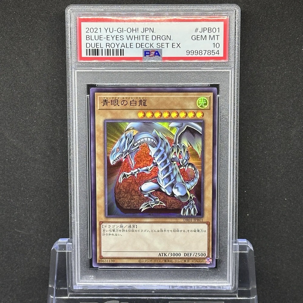 Thank you for looking at our products. YU-GI-OH! Japanese Blue Eyes White Dragon DR01-JPB01 Duel Royale Deck Set EX The language on the card is Japanese. The grade is PSA10. This is a one-owner item that I had PSA appraise. It was stored in a humidity controlled cabinet. There may be small scratches on the case, so please refrain from purchasing if you are sensitive about such things. Shipping is the same for up to 2 PSA items,so feel free to send us a message and we will issue you an invoice. *The PSA stand in the photo is not included. *Import duties, taxes, and fees are not included in the item price or shipping charges. Please note that these charges are the buyer's responsibility. We also carry Yu-Gi-Oh!, Pokemon, One Piece, Dragon Ball, and other cards, so please take a look inside the store. Thank you for reading this far.