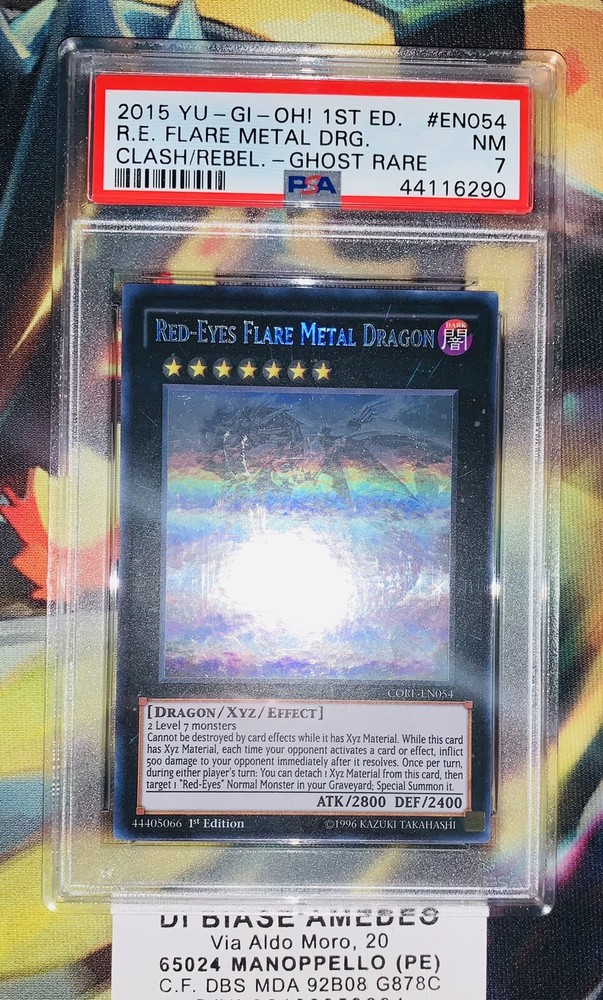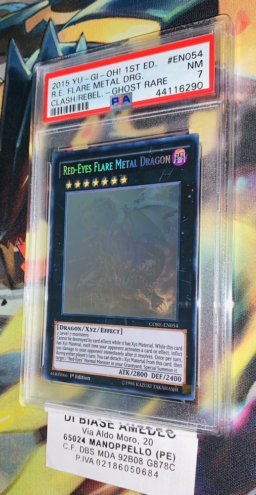 ⭐️ PSA 7 Red-Eyes Flare Metal Dragon CORE-EN054 Ghost Rare 1st Edition 2015 The description of this item has been automatically translated. If you have any questions, please feel free to contact us. ⭐️PSA 7 RED-EYES FLARE METAL DRAGON CORE-EN054 GHOST RARE 1st EDITION 2015! PSA PLASTIC MAY HAVE SCRATCHES WHICH DO NOT AFFECT THE VALUE OF THE CARD! THE PAPER IS PSA CERTIFIED WITH A RATING OF 7 AND IT IS EXACTLY AS VISIBLE IN THE PHOTOS! IT WILL BE SHIPPED WITH A PLASTIC PROTECTIVE SLEEVES AND IN THE MOST PROTECTED WAY THERE IS! FOR MORE PHOTOS DON'T HESITATE TO CONTACT ME! IT IS ORIGINAL LIKE ALL THE CARDS I HAVE FOR SALE! I AM VERY SERIOUS AND ALWAYS AVAILABLE FOR INFO, PHOTOS OR OFFERS, DO NOT HESITATE TO CONTACT ME AT ANY TIME! ⭐️PSA 7 RED-EYES FLARE METAL DRAGON CORE-EN054 GHOST RARE 1st EDITION 2015! PSA PLASTIC MAY HAVE SCRATCHES WHICH DO NOT AFFECT THE VALUE OF THE CARD! THE PAPER IS PSA CERTIFIED WITH A RATING OF 7 AND IT IS EXACTLY AS VISIBLE IN THE PHOTOS! IT WILL BE SHIPPED WITH A PLASTIC PROTECTIVE SLEEVES AND IN THE MOST PROTECTED WAY THERE IS! FOR MORE PHOTOS DON'T HESITATE TO CONTACT ME! IT IS ORIGINAL LIKE ALL THE CARDS I HAVE FOR SALE! I AM VERY SERIOUS AND ALWAYS AVAILABLE FOR INFO, PHOTOS OR OFFERS, DO NOT HESITATE TO CONTACT ME AT ANY TIME! Grado 7 Lingua Inglese Produttore Dragon Segnapunti professionale psa Personaggio Dragonair Rarità Rara Gioco yu gi oh