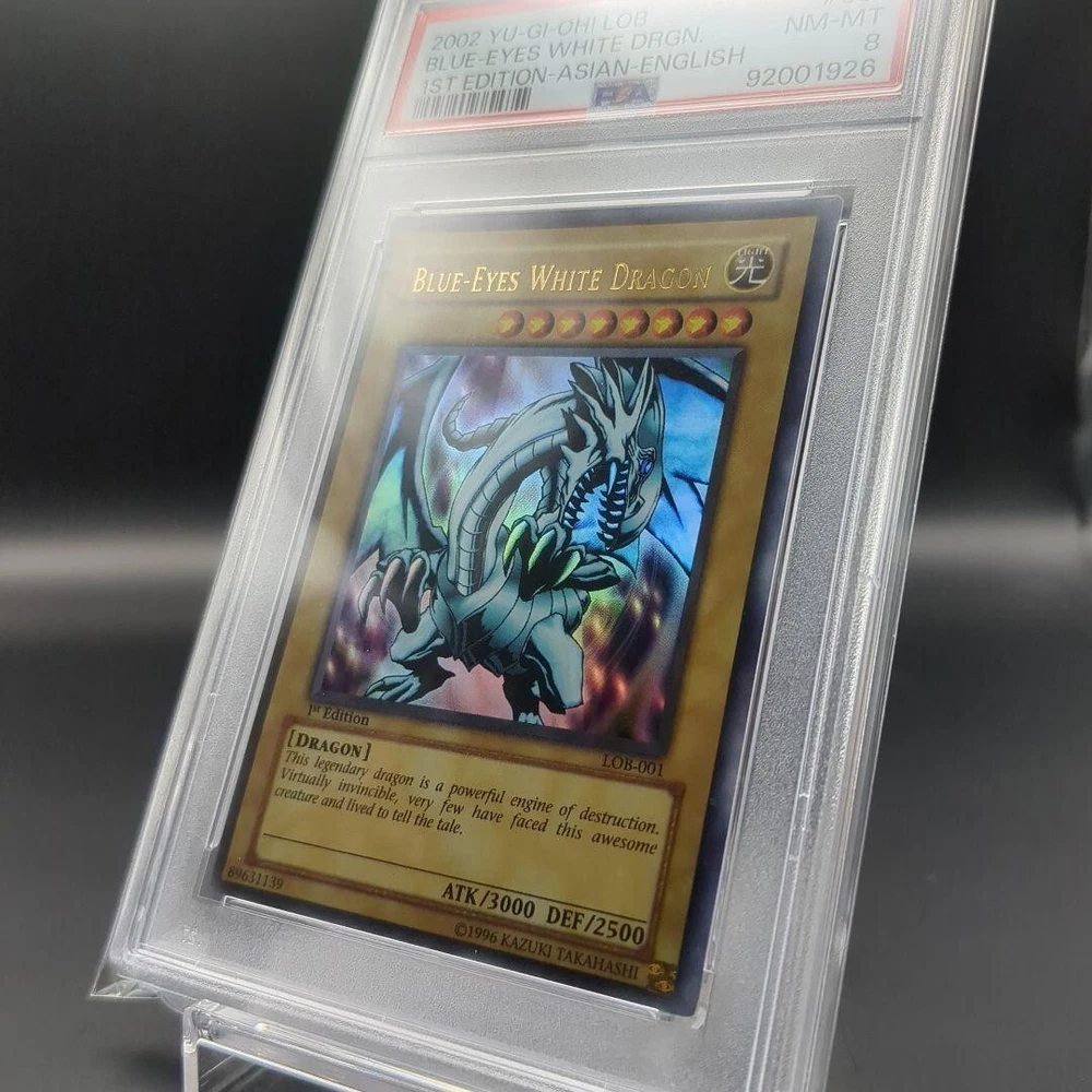 Product PSA 8 2002 Blue Eyes White Dragon LOB-001 1st ED Ultra Rare YuGiOh English Holo Condition: U sed Shipping Shipping is free. All shipments have a tracking number. However, there are some countries where a tracking number cannot be provided. If you have checked the tracking number, please contact us. All shipments are shipped from Japan. We set the shipping date within 5 days. It rarely takes that long, but there are times when I am away from home. Since this is an airmail service, there may be delays due to shipping and customs conditions. Contact Please feel free to contact us at any time. I am happy to find the product you are looking for. Please note Import duties, taxes, and charges aren't included in the item price or postage cost. These charges are the buyer's responsibility."Please check with your country's customs office to determine what these additional costs will be prior to bidding or buying.