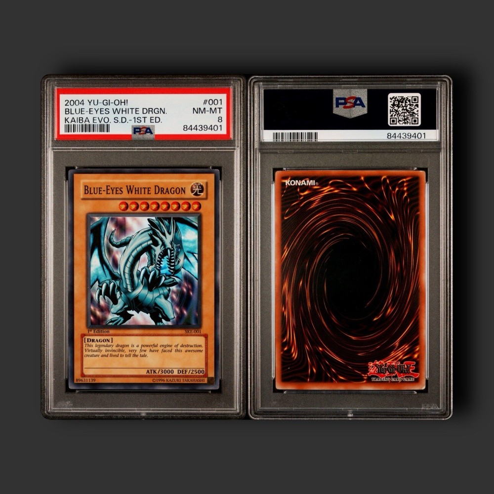 This PSA 8 Blue-Eyes White Dragon SKE-001 Starter Deck: Kaiba Evolution 1st Edition is a must-have for any Yu-Gi-Oh! TCG collector. The card features a Dragon creature type with 2500 defense/toughness and 3000 attack/power. It is a Super Rare card with English language and manufactured by Konami. The card belongs to the Starter Deck: Kaiba Evolution set and has a normal card type with card number SKE-001. It falls under the category of Toys & Hobbies and Collectible Card Games, specifically CCG Individual Cards. Don't miss the chance to add this rare and powerful card to your collection.