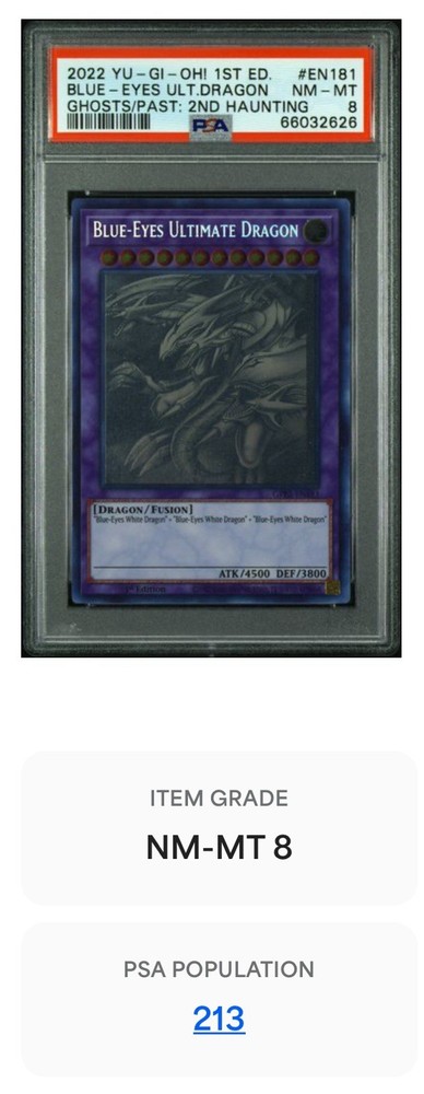 Elevate your Yu-Gi-Oh! TCG collection with the iconic Blue-Eyes Ultimate Dragon, a Ghost Rare card that stands out with its distinctive white foil and ghostly holographic effects. From the Ghosts From The Past: 2nd Haunting set, this card is a must-have for both serious collectors and duelists seeking to make a powerful addition to their deck. The card, manufactured in 2022, features the classic Blue-Eyes Ultimate Dragon design that has captivated players for years. With its striking appearance and rarity, it's not just a card but a collectible piece that resonates with the spirit of the game. Add this spectral masterpiece to your collection and witness its prowess in your next battle. Case may be scratched due to age and wear.