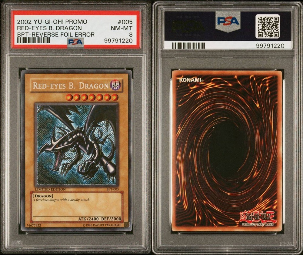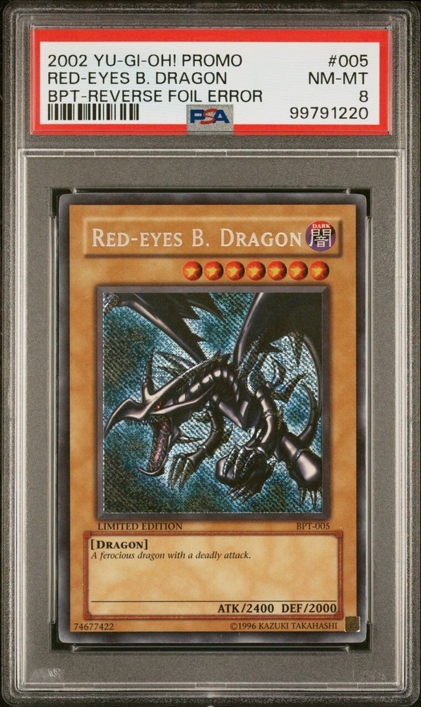 PSA 8 Red-Eyes B. Dragon BPT-005 Limited Edition Rare Reverse Foil Error.