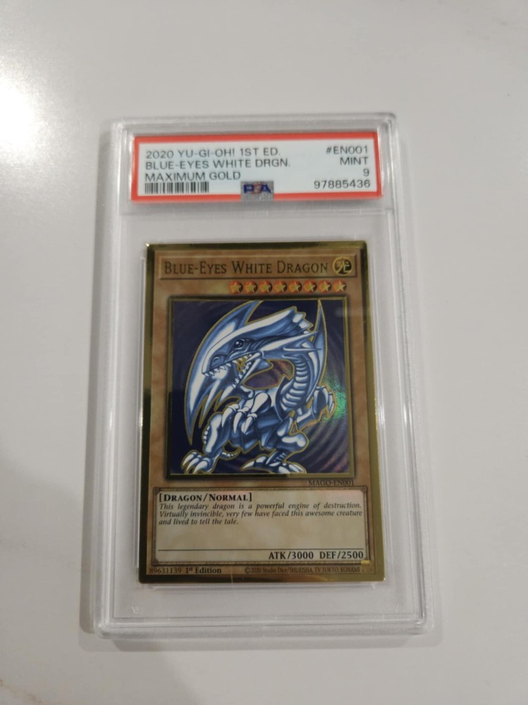 You are purchasing 1 - PSA 9 Blue-Eyes White Dragon 1st Edition from Maximum Gold (Mago-en001) All sales are final and sold as-is. If ever there is an issue please contact us before leaving a review.