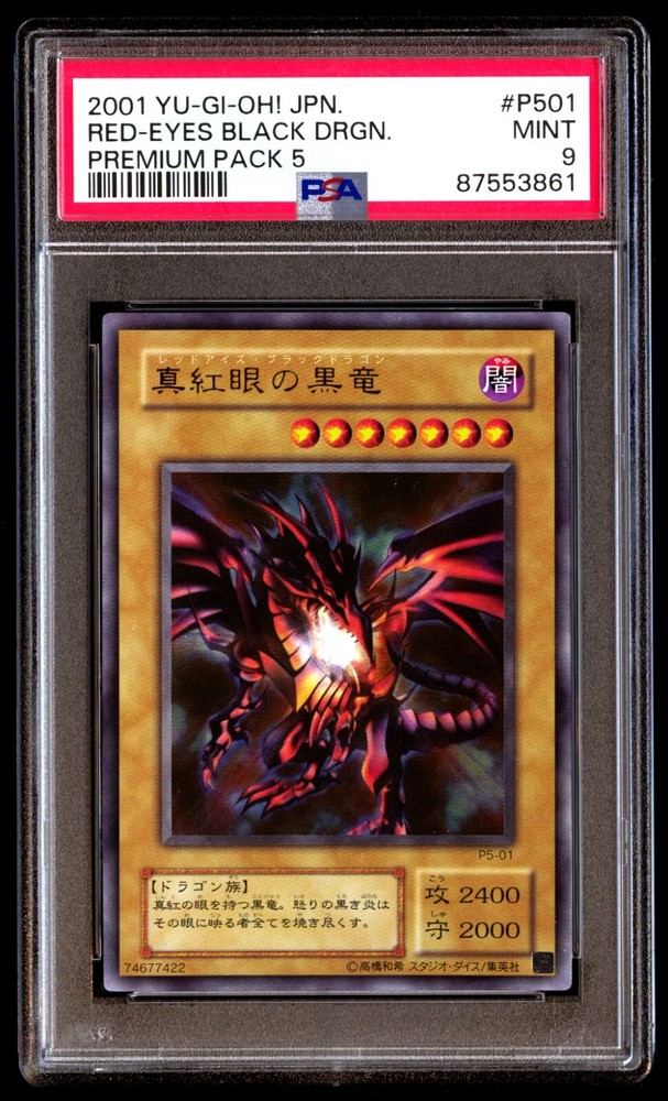 PSA 9 Mint Red-Eyes Black Dragon P5-01 Premium Pack 5 2001 Japanese Graded Card
