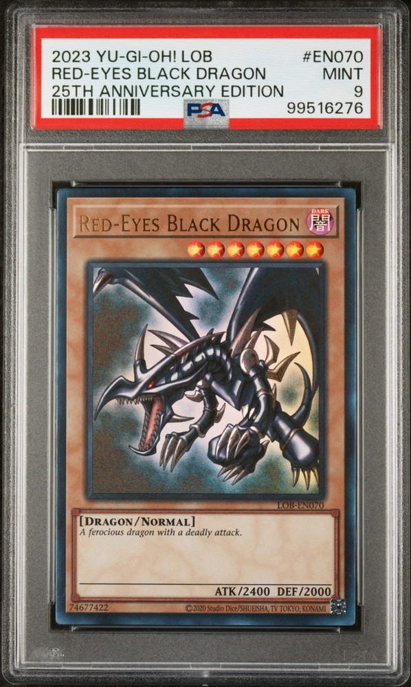 PSA 9 Red-Eyes Black Dragon Ultra Rare LOB-EN070 25th Anniversary Edition (Mint) PSA 9 rating, case is in mint condition. Shipped with tracking via USPS. PSA 9 Red-Eyes Black Dragon Ultra Rare LOB-EN070 25th Anniversary Edition (Mint) PSA 9 rating, case is in mint condition. Shipped with tracking via USPS. × × × Buy now and save! Tell a friend Visit store Watch now Postage info USPS Ground Advantage - USPS First Class Package International - $0.00 Click the Postage tab above the listing description for more info Additional delivery notes PICK UP OPTION Sorry, our items are NOT available for pick-up. PAYING VIA PAYPAL We accept PayPal on our all our items so you can shop with confidence. Simple choose the PayPal option when proceeding through the checkout. Additional Information No additional information at this time Ask seller a question Contact To contact our Customer Service Team, simply click the button here and our Customer Service team will be happy to assist. Ask seller a question © SpeedyFPV Postage Click the Postage tab above the listing description for more info Payment Accepted Payment Methods PayPal Returns Returns are accepted Items must be returned within 30 days of the auction ending Seller will pay for return shipping. eBay integration by