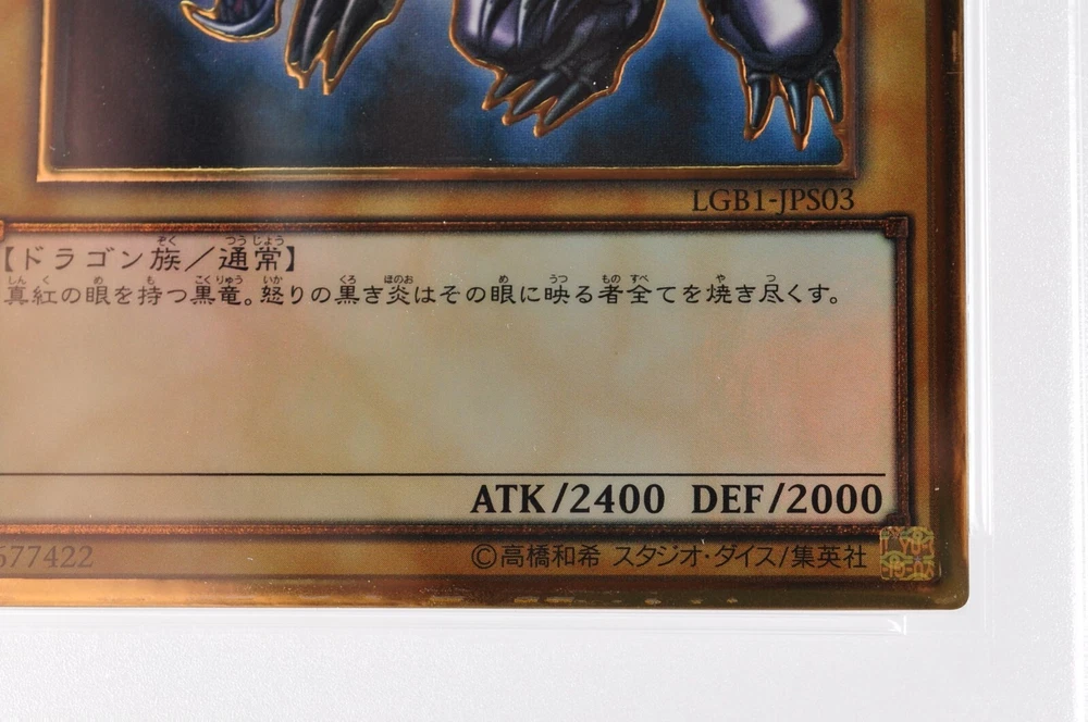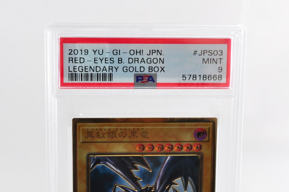 PSA 9 Yugioh TCG Red-Eyes Black Dragon LGB1-JPS03 LEGENDARY GOLD BOX Japanese Description Condition; ■TOTAL PSA 9 Moderately Played (Very Good) Pre-owned, There is a feeling of use such as white chips on the edges, slight scratches, distortion, and dirt. Language; Japanese Card Name; Red-Eyes Black Dragon Set; Yugioh Card Number; LGB1-JPS03 Rarity; Gold Bundled Items; All you can see on the picture will be included in a set of a package. Above condition is based on my own opinion. Please check the photo carefully. Please feel free to contact me for any questions! Thank you. Payment We accept PayPal, Visa, MasterCard, American Express and Discover . Payment is due within 5 days of the auction end. We will ship the item 3 business days after your payment clears. Shipping I send a product by Japan Post . ☆Airmail(tracking number 7-14 days to USA.) ☆EMS+20$(insurance &tracking number 3-7 days to USA) Please bid it without worrying. Shipping is available from Monday to Friday. Weekends are not available because post office is closed. Returns Unconditional Return Policy Customer service and satisfaction are very important to us. Return is accepted if only the item is different from item's description within 30 days of the receipt of the item. All returned items must be the original condition. All return requests must be made within 30 days of the receipt of the item. In case buyer wants to return the item, please send us a message first in order to discuss how to handle. Please do not use "return request" in eBay menu. The postage of the returned goods is a seller burden. International Buyers Please Note: Import duties, taxes, and charges are not included in the item price or shipping cost. These charges are the buyer's responsibility. Please check with your country's customs office to determine what these additional costs will be prior to bidding or buying.