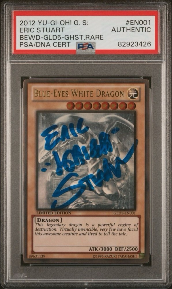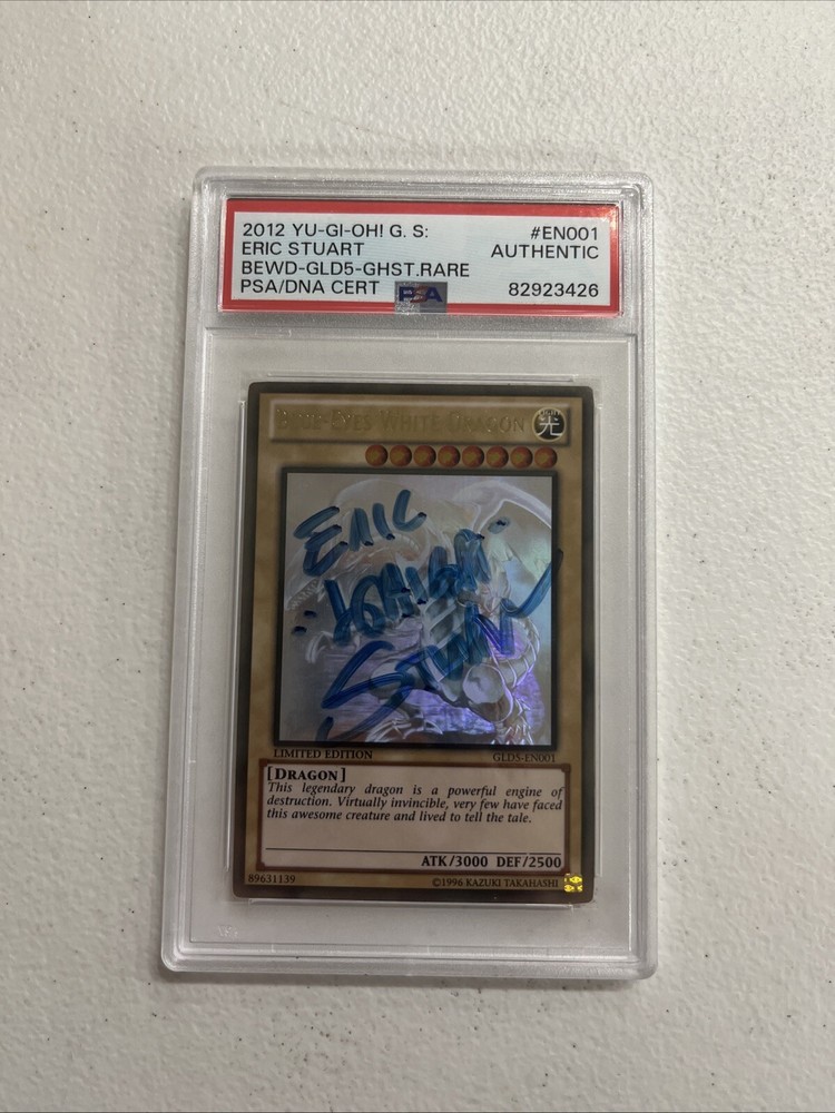 PSA Signed Eric Stuart Yugioh Blue-Eyes White Dragon GLD5-EN001 Ghost Rare