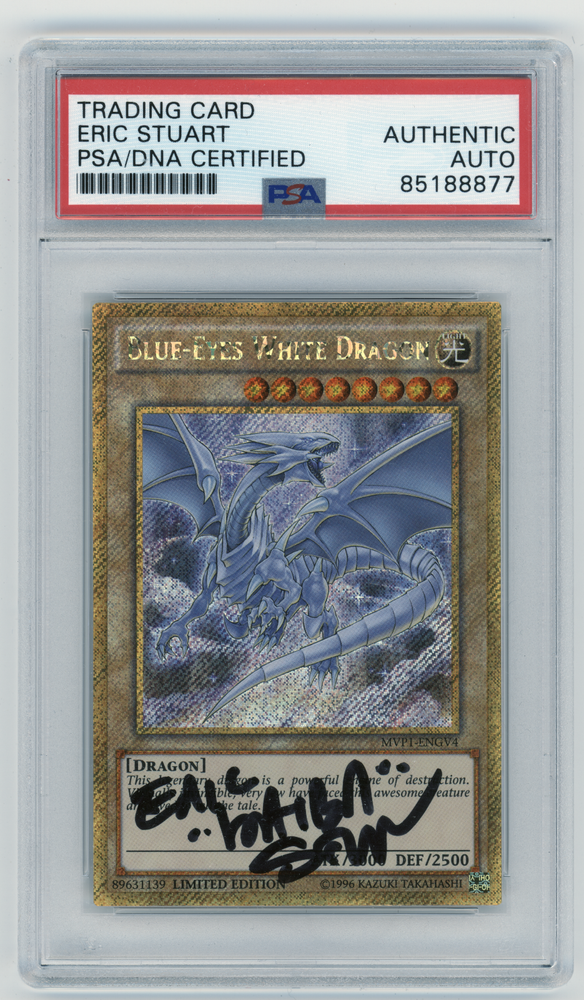 This is a rare and highly sought-after card from the Yu-Gi-Oh! TCG game. The Blue-Eyes White Dragon is a limited edition card featuring Seto Kaiba as the character. It is a Gold Secret Rare card with a unique autograph from the card's manufacturer, Konami. This card is perfect for collectors and players alike, with its exceptional rarity and powerful abilities. The card comes from the "The Dark Side of Dimensions Movie Pack Gold Edition" set, and is an MVP1-ENGV4 card. Don't miss out on this opportunity to add a piece of Yu-Gi-Oh! history to your collection!