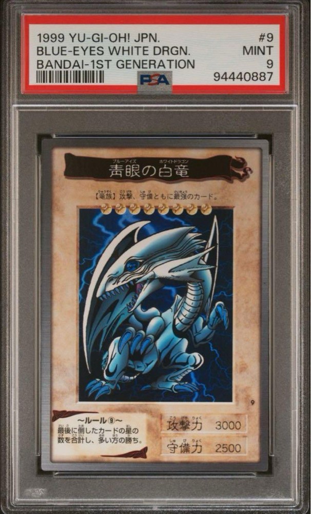 The product is a PSA10 graded 1999 Yu-Gi-Oh! Japanese Blue-Eyes White Dragon card from Bandai's 1st generation set. This collectible card is from the Yu-Gi-Oh! TCG and is part of the Yugi set released in 1999. It is a highly sought after card for collectors due to its rarity and popularity among fans of the game. The card features the iconic Blue-Eyes White Dragon attribute, making it a valuable addition to any card collection. Yu-Gi-Oh PSA If you buy in bulk, It will be an additional shipping fee of $5 per card from the second purchase. I am a beginner at eBay, but I have sold it more than 1,000 times through mail order in Japan. 【As a Japanese card professional, we sell Japanese PSA cards to the world】 It is a one-owner product that I personally submitted to PSA, so it will be 100% genuine. As soon as I get PSA back, I put it in a sleeve for the PSA case and make sure it doesn't even have fingerprints on the case. Please don't worry, we will ship the item with the evaluation number as shown in the photo :) When shipping, I will wrap my PSA cards with bubble wrap and send it by Fedex with tracking number. [Cautionary Notes] The price of the product is fluctuating based on the market price. Therefore, we ask for your understanding of the sudden price increase and price reduction. Even PSA10 evaluation, there may be small scratches/dents/hollows/white chipping, etc In order to prevent trouble, please make sure to check the condition in the image We handle the case carefully, but there are rare initial scratches that have been made since the shipment. The PSA will be delivered to you, so please understand that all the products have small, thin line scratches on the case. We sell them after all inspections, but please refrain from purchasing them if you are nervous. Thank so much for reading and I hope we can have a good dealing!