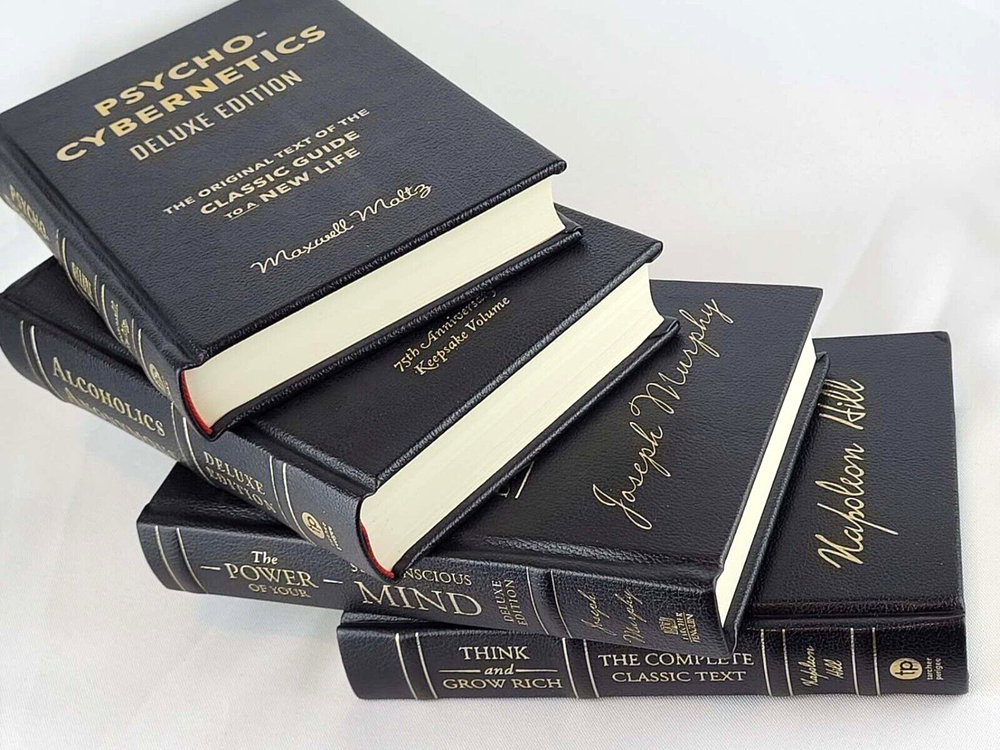 Set of 4 Deluxe Leather bound classics included: Psycho-Cybernetics Original Text of the Classic Guide Think and Grow Rich The Complete Classic Text The Power of Your Subconscious Mind Deluxe Edition Alcoholics Anonymous 75th Anniversary Keepsake Volume Product dimensions: 5.30(w) x 7.50(h) Weight: 5.2 lb