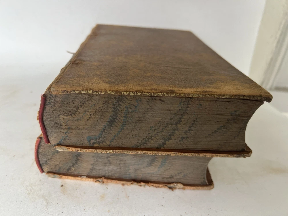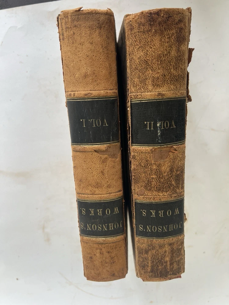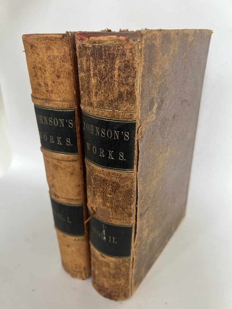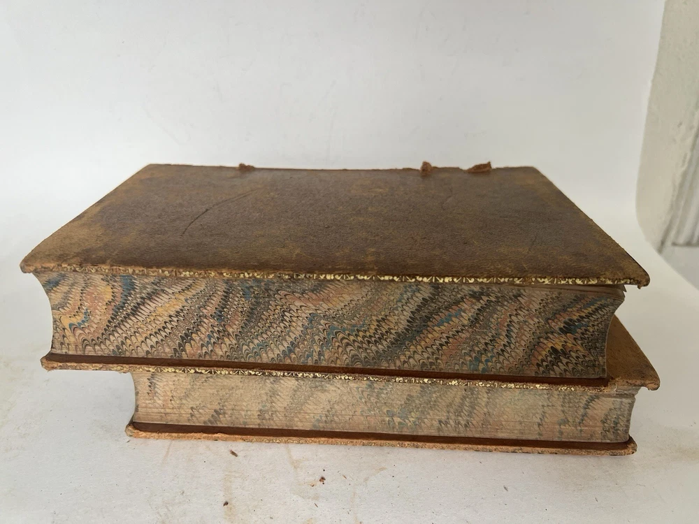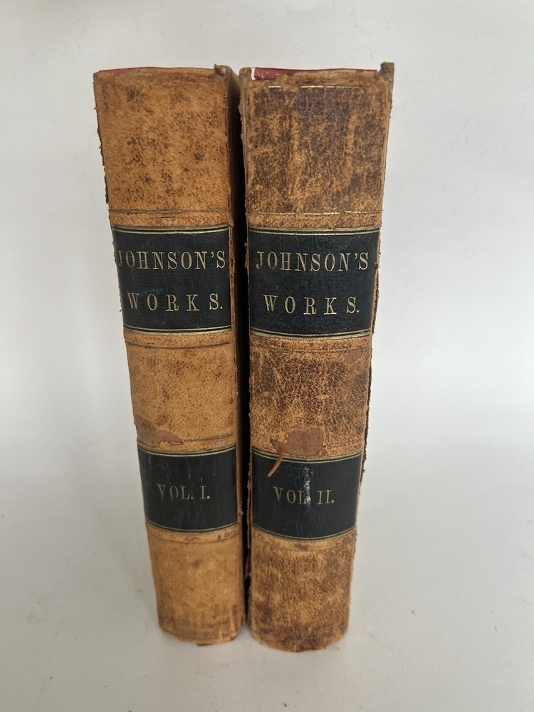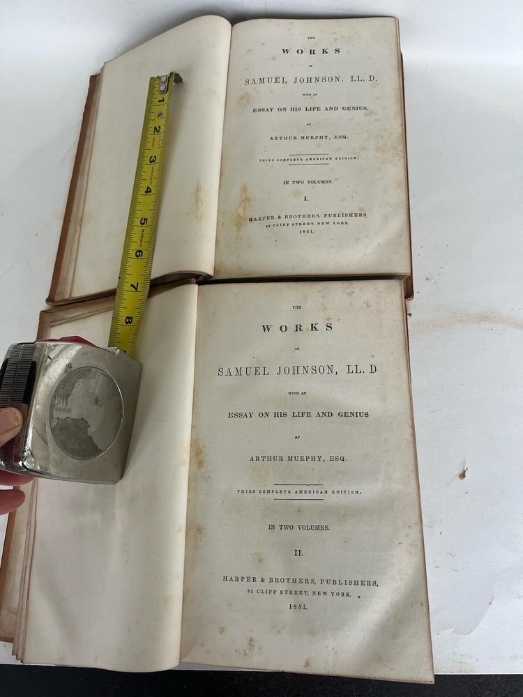 Pair (2) Antique 1851 Johnson's Work Harper Brothers Leather Bound II Volume Complete Set Third Edition. Each book is about 9.5" x 6" x 2". The books are complete, however there are condition flaws such as on the leather bound as clearly shown. Or else the set is in good condition. Please examine all the pictures as they are an essential part of the description. Thank you and have a great day!