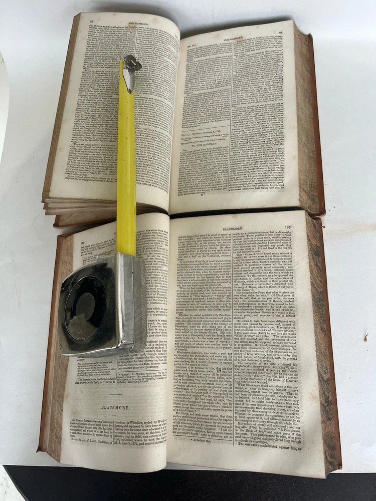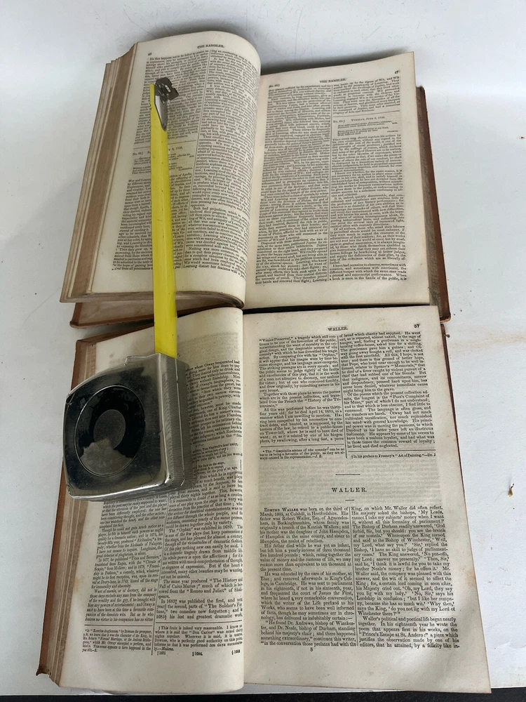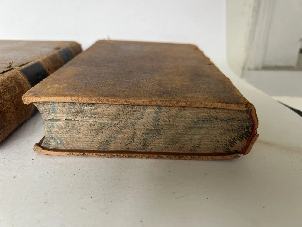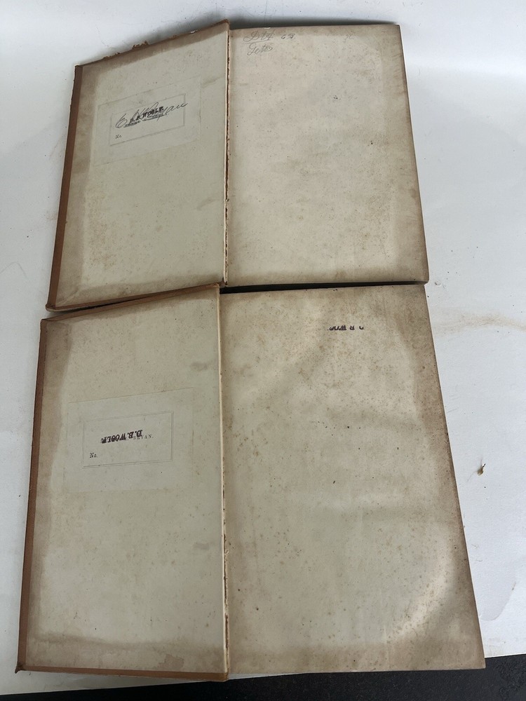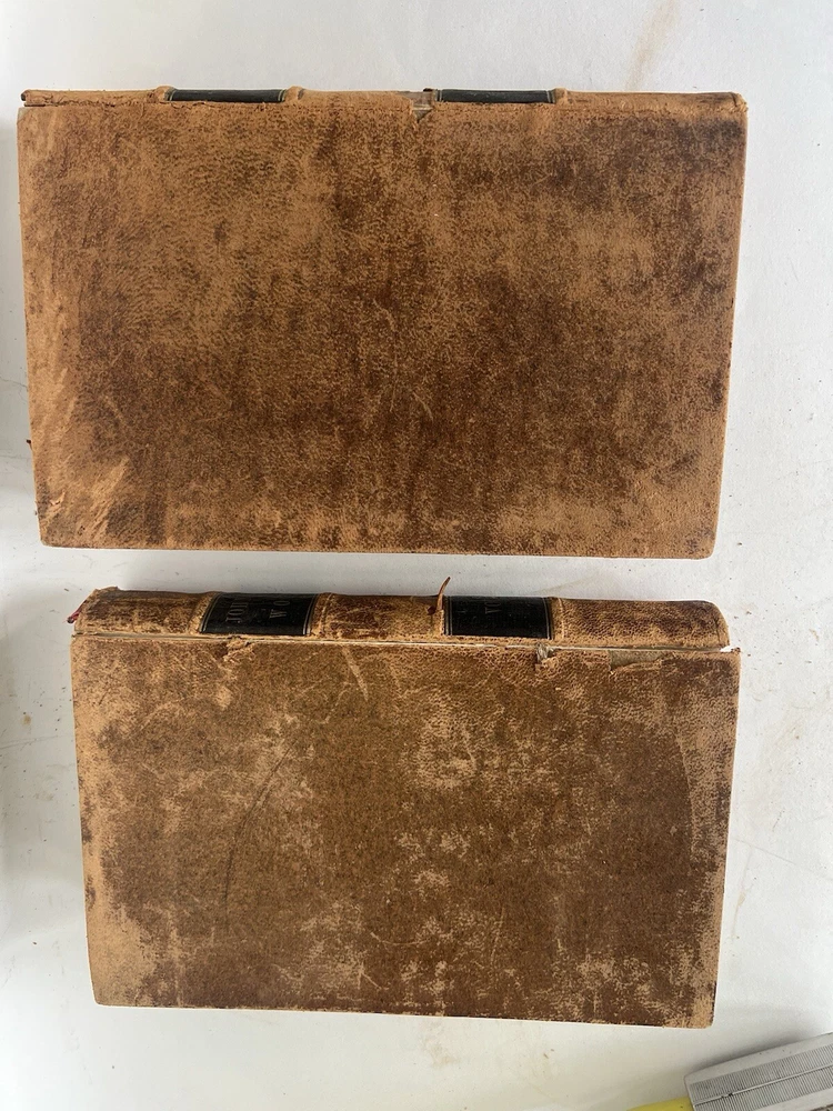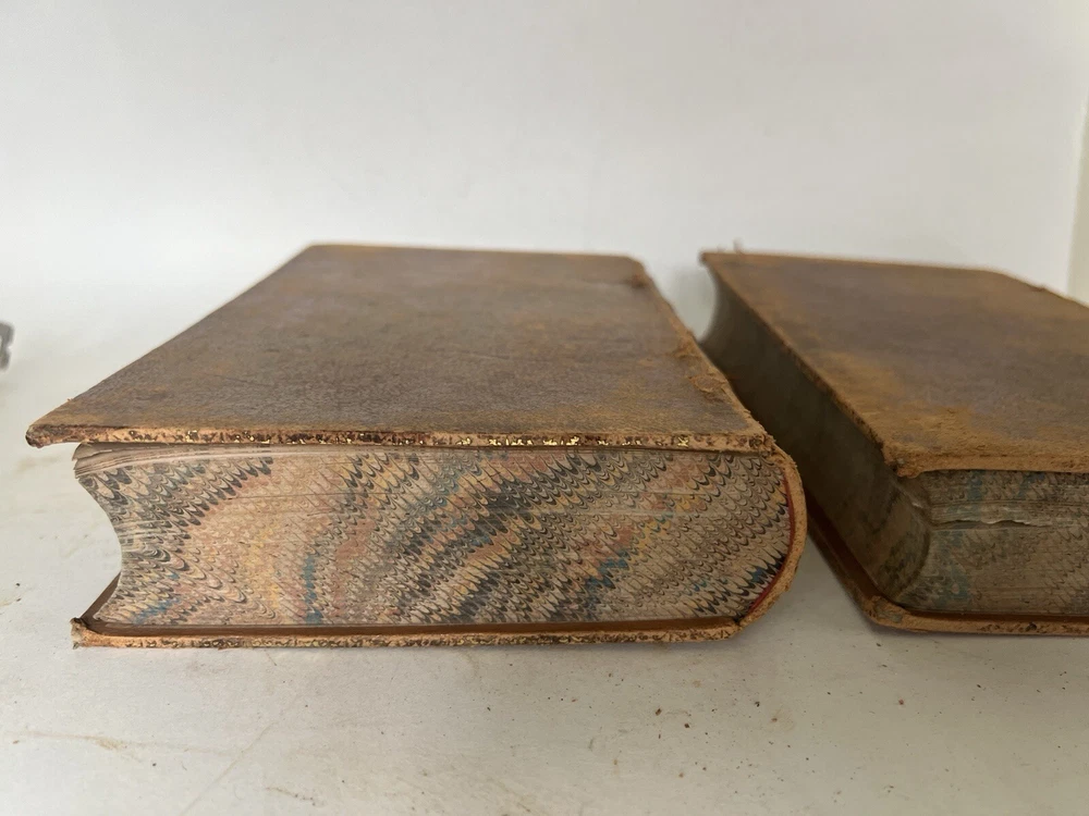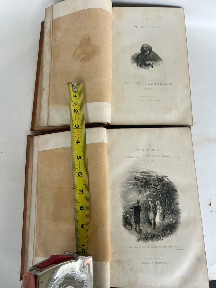 Pair (2) Antique 1851 Johnson's Work Harper Brothers Leather Bound II Volume Complete Set Third Edition. Each book is about 9.5" x 6" x 2". The books are complete, however there are condition flaws such as on the leather bound as clearly shown. Or else the set is in good condition. Please examine all the pictures as they are an essential part of the description. Thank you and have a great day!