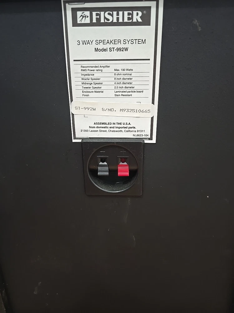 Fisher 3-Way Speakers in Pre-owned condition. Please view pictures for accurate depiction. Before you leave negative feedback, kindly reach out so we can resolve the issue. Experience high-quality sound with this pair of Fisher ST-992W 3-Way Speakers. Made in the United States, these vintage speakers are perfect for your home audio system. With a power output of 100W, these speakers are sure to impress. The Fisher brand is known for its durable and high-quality products. These speakers are no exception. They are designed to provide clear and detailed sound, making them perfect for music, movies, and games. Upgrade your audio system today with this pair of Fisher ST-992W speakers.