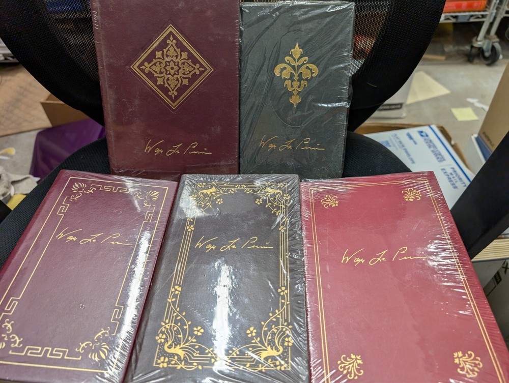 This set is composed of 5 leatherbound classics new in factory seal. The books are Democracy in America by de Tocqueville Two Treatises on Government by Locke Common Sense and The Rights of Man by Paine Jefferson and Madison by Koch On The Constitution of the United States by Story BT250317022X7