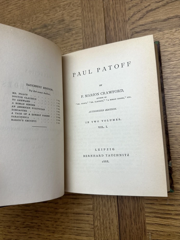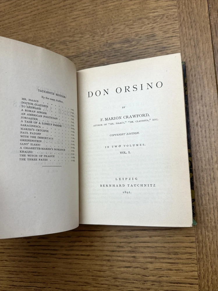 This lot includes three books by F. Marion Crawford, all part of the Tauchnitz and authorized editions. The books are titled Paul Patoff, Don Orsino, and a collection of British authors. The leather binding of these books and the limited edition make them a great addition to any collection of antiquarian and collectible books. These books were published in Leipzig, Germany by Bernhard Tauchnitz in 1888 and are in their original condition, with only an ex-library sticker as a modification. The books are written in English and belong to the category of literature and fiction, specifically in the classics genre. This lot offers a unique opportunity to own a part of history and add to a personal collection. 📝Welcome to the ITEM DESCRIPTION! 📝 Here you will find additional details pertaining to your specific item. If for whatever reason you have any further questions regarding the product, feel free to do so! Condition Checklist ☑️ • Cover Condition? Fair • Spine Condition? Good • Corners Condition? Fair • Marks such as dirt marks, scuffs, smudges, etc..? observed • Tears such as in the cover? Yes, observed **** 🔬Please zoom in/out of all pictures before purchasing as they are part of the description of this item/set. Send us a message with any questions or concerns. **** Please be aware : that any photos with bookends does not mean that the bookends are included. **** Return Policy: Your satisfaction is important to us. We accept returns!! Buyer pays for return shipping fees. Shipping: 📪📫📬📭 We mainly have our domestic shipping by USPS MEDIA MAIL OR USPS PRIORITY MAIL. If you can wait for your orders to arrive a little longer, we can certainly change this to USPS RETAIL GROUND or any other shipping methods so you can save on shipping costs. Don’t hesitate to ask if you have any requests that isn’t our main shipping method or if you have any special requests in the packaging process of the product you desire. International buyers – please note: Import duties, taxes, and charges are NOT included in the item price or postage cost. These charges are the buyer's responsibility. 📦 Please check with your country's customs office to determine what these additional costs will be prior to bidding or buying. Feedback Request: Our business will continue to thrive with your feedback. If you are unhappy with any of our products, please contact us so we can resolve any issues that may arise. - Whitewood Team