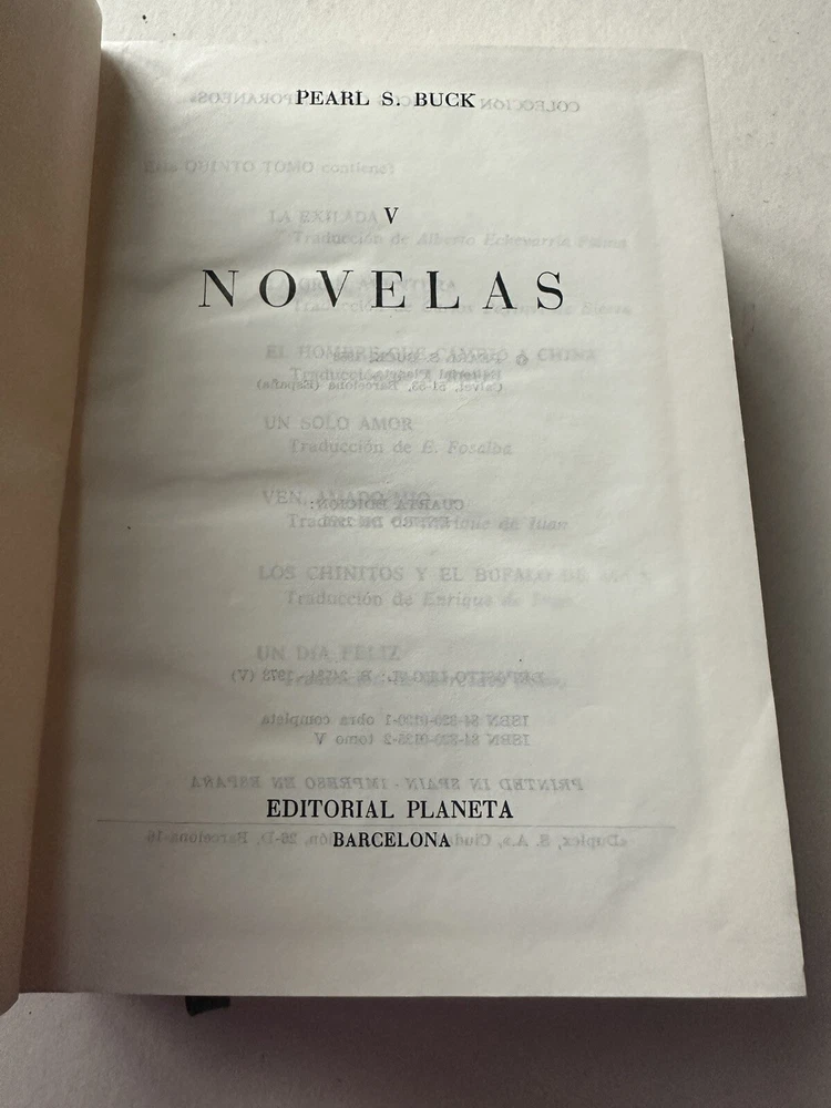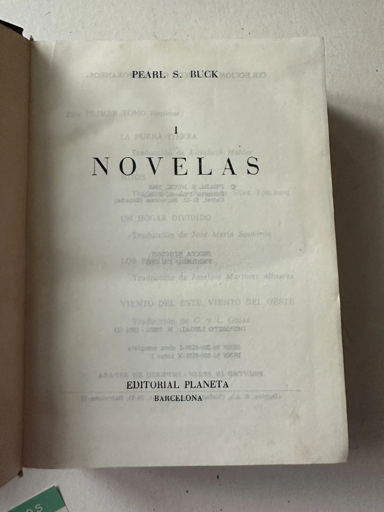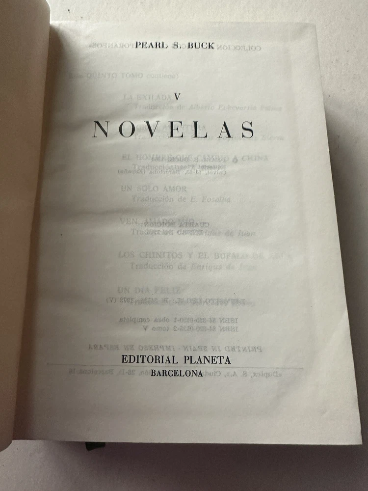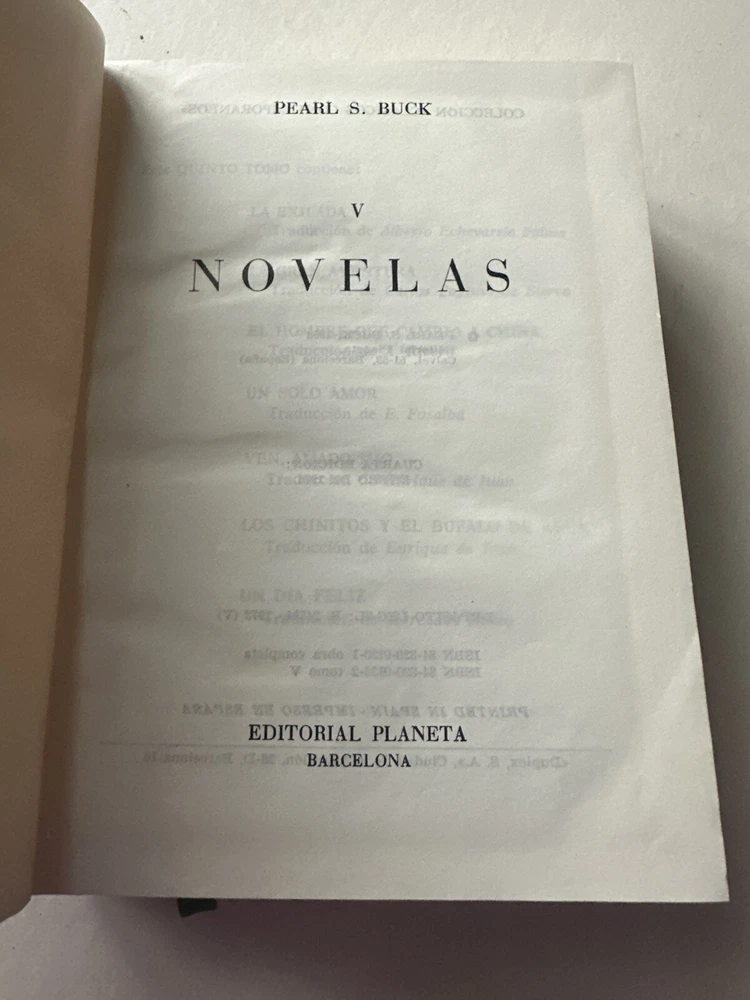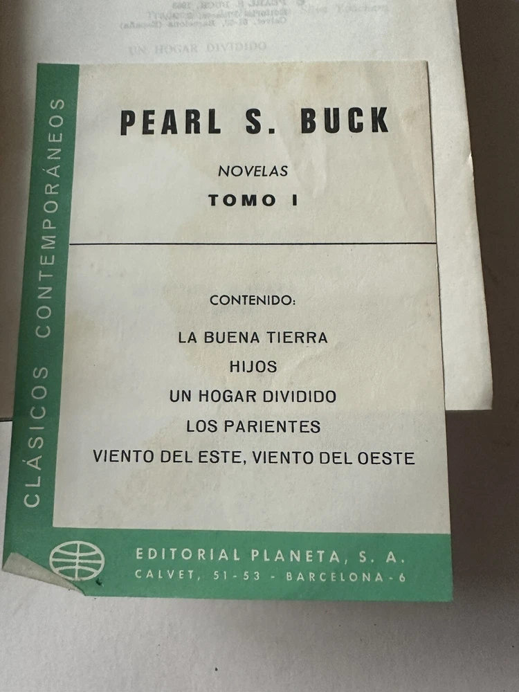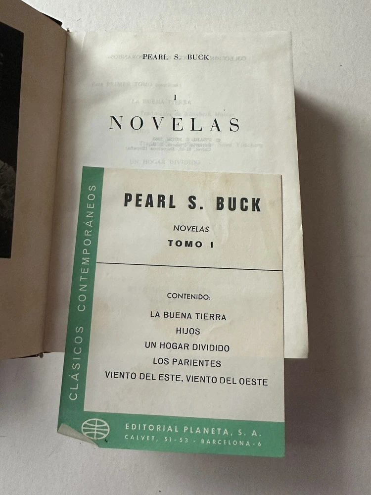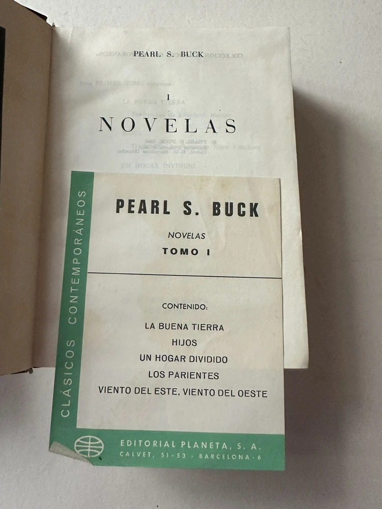 Pearl S. Buck – Novelas (Volumen I & V) Published by Editorial Planeta, Barcelona, Spain Fourth edition, January 1975 Originally copyrighted 1953 Language: Spanish (Español) Included novels (Vol. I): • La Buena Tierra (The Good Earth) • Hijos (Sons) • Un Hogar Dividido (A House Divided) • Los Parientes (The Kinfolk) • Viento del Este, Viento del Oeste (East Wind: West Wind) Details: • Set of 2 hardcover volumes (I & V) • Faux leather-bound with gold gilt spine decoration • Publisher: Editorial Planeta • Dimensions approx. [укажи размеры книг] • Printed in Spain, 1975 Condition: Good vintage condition. Covers clean with light wear. Pages intact, no writing or highlighting. Some light age toning. Includes original content page insert in Vol. I. ⸻ Теги / Keywords: pearl s buck, novelas, editorial planeta, spanish edition, vintage book set, faux leather, barcelona, literature in spanish, the good earth, collectible books, 1970s books
