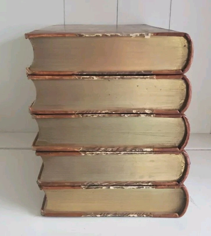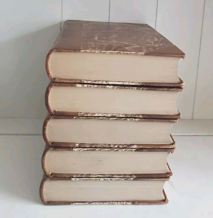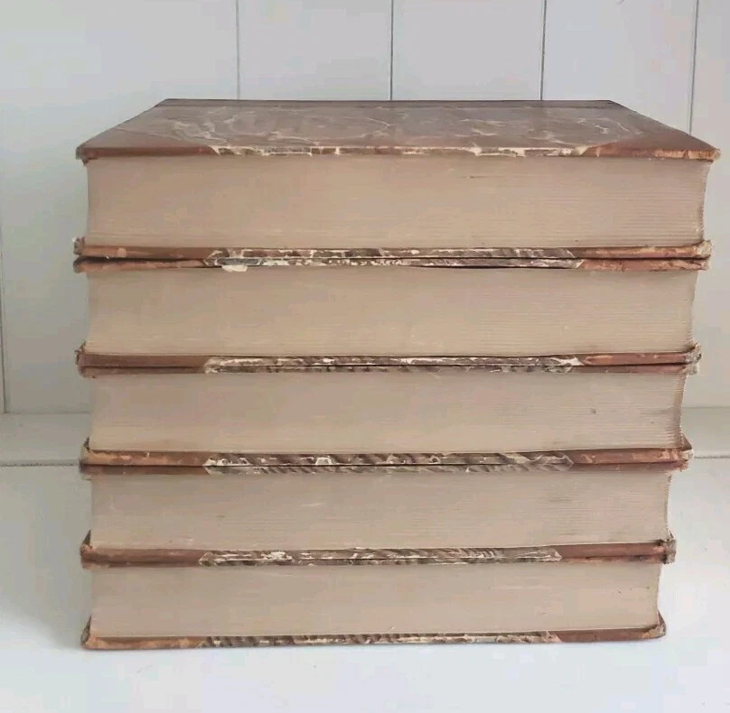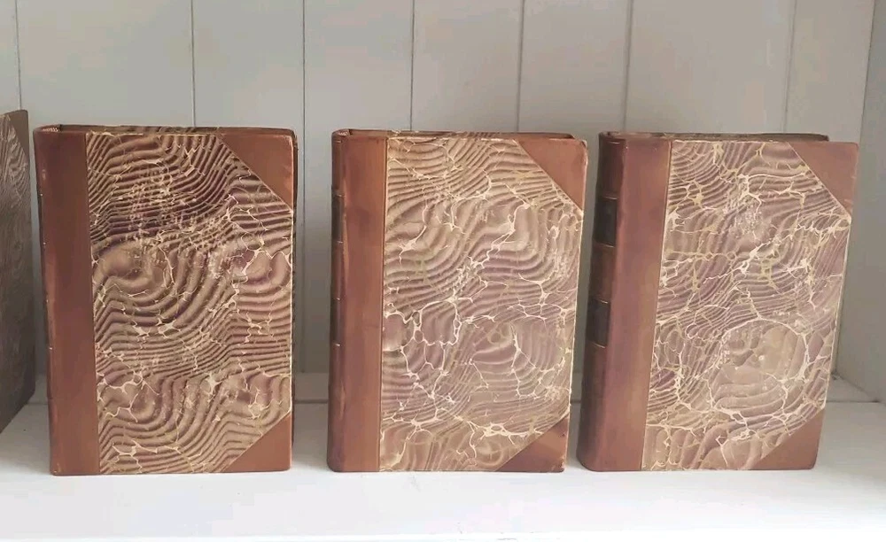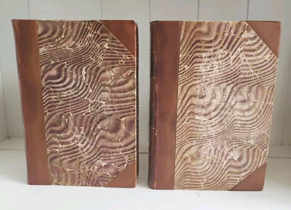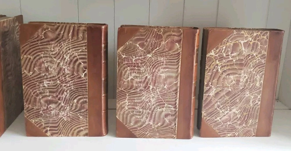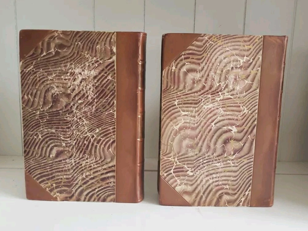 This is a genuine antique book set, literally a piece of history. If it were sentient, it could tell of over a hundred years full of lives it has touched and hands it has passed through. Every year, more of these irreplaceable treasures are lost-- to fires, floods, etc., or simple carelessness. It is my hope to rescue as many as possible and help them find homes where they will be cherished and passed on to future generations. All of my antique leather books are treated with Cellugel (which is safe for all book materials) to preserve the leather and inhibit deterioration from red rot. The leather has pre-existing scars and wear. All leather books ship carefully packed in a box. There is no date printed inside, and no publisher's address or other obvious clue. Based on the leather and marbled boards, I estimate between 1880-1920. No writing, tears or odors. Pages are in nearly pristine condition. All photos depict the actual book listed; please examine them carefully. If you have any questions, please ask. Thanks for looking! Please visit my eBay store to find more great books! Your purchase supports small family business. https://www.ebay.com/str/neverenoughbooks65