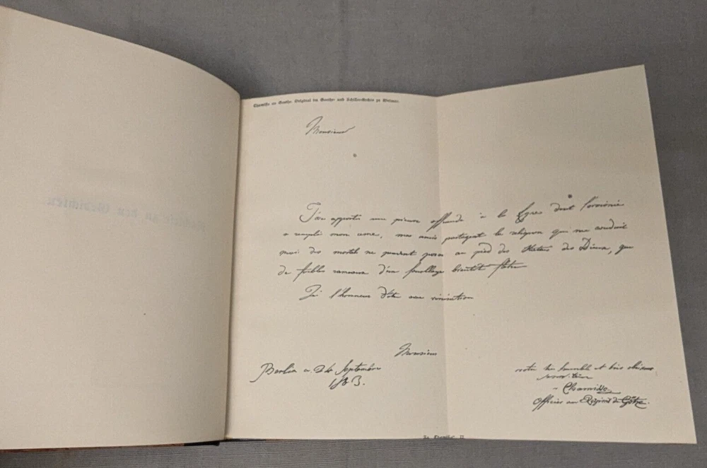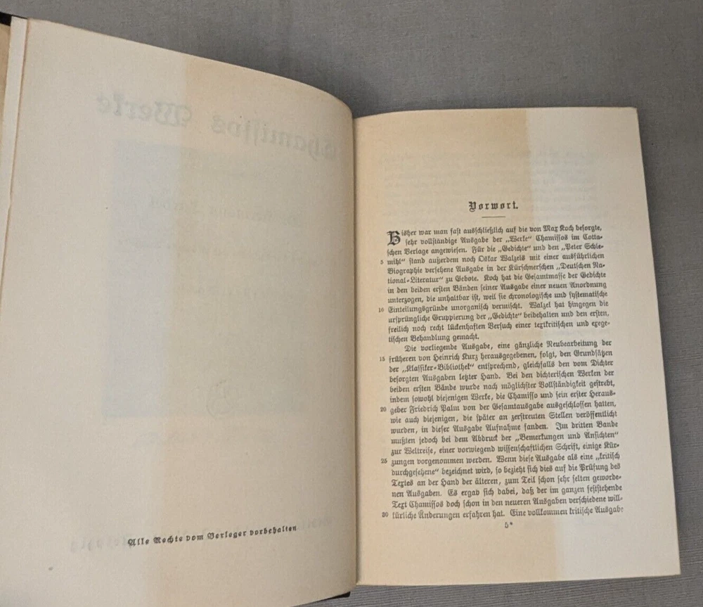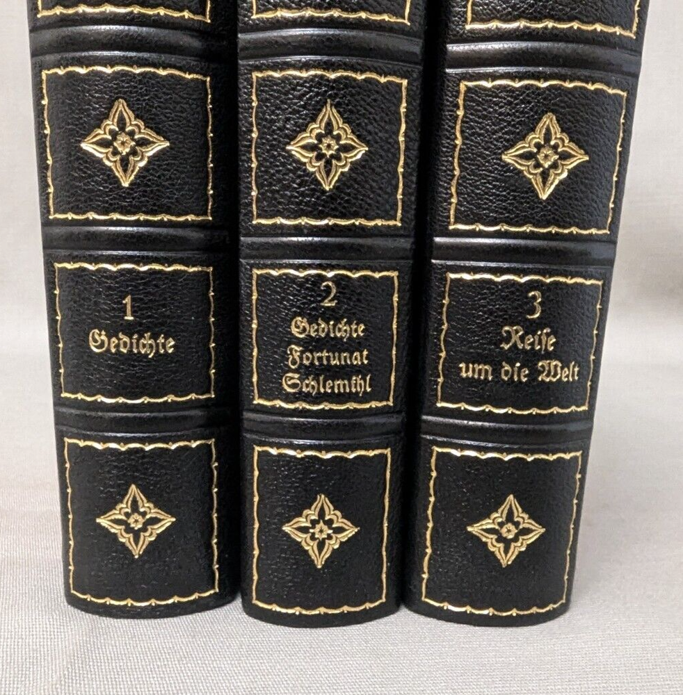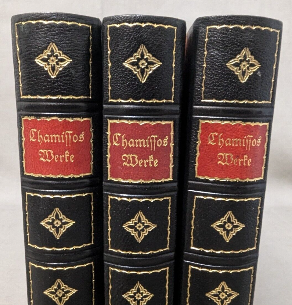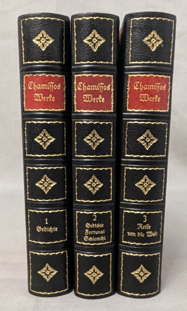 Immerse yourself in the poetic world of Chamisso with this exquisite set of three books, bound in elegant leather with a gilded top. Each volume is a testament to the author's mastery of language and imagination, exploring a range of topics that will captivate and inspire any lover of literature. With text in German, this set is a must-have for collectors and scholars alike, offering a unique opportunity to experience the beauty of Chamisso's works in their original language. Whether you're looking to add to your personal library or seeking a special gift for a literary enthusiast, this set is sure to delight. In very good condition. Please view all photos for visual condition. Please, message me with any questions, before bidding or purchasing. Thank You and Good luck! Upon receiving payment, item(s) usually ship within three (3) business days (M-F). If you need your purchase shipped faster, please message me and we will be happy to rush your purchase. Payment within three (3) days of winning the auction is appreciated! Thank you for stopping by and giving me a look! Every effort is made to describe items fairly and correctly. I will be more than happy to answer any questions or send additional photos, by email during the auction. Please look at the pictures and ask questions before bidding or purchasing. Thank you.