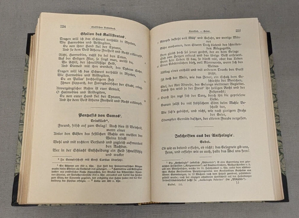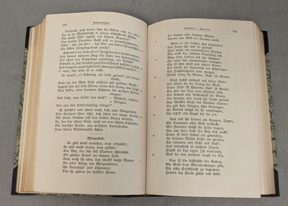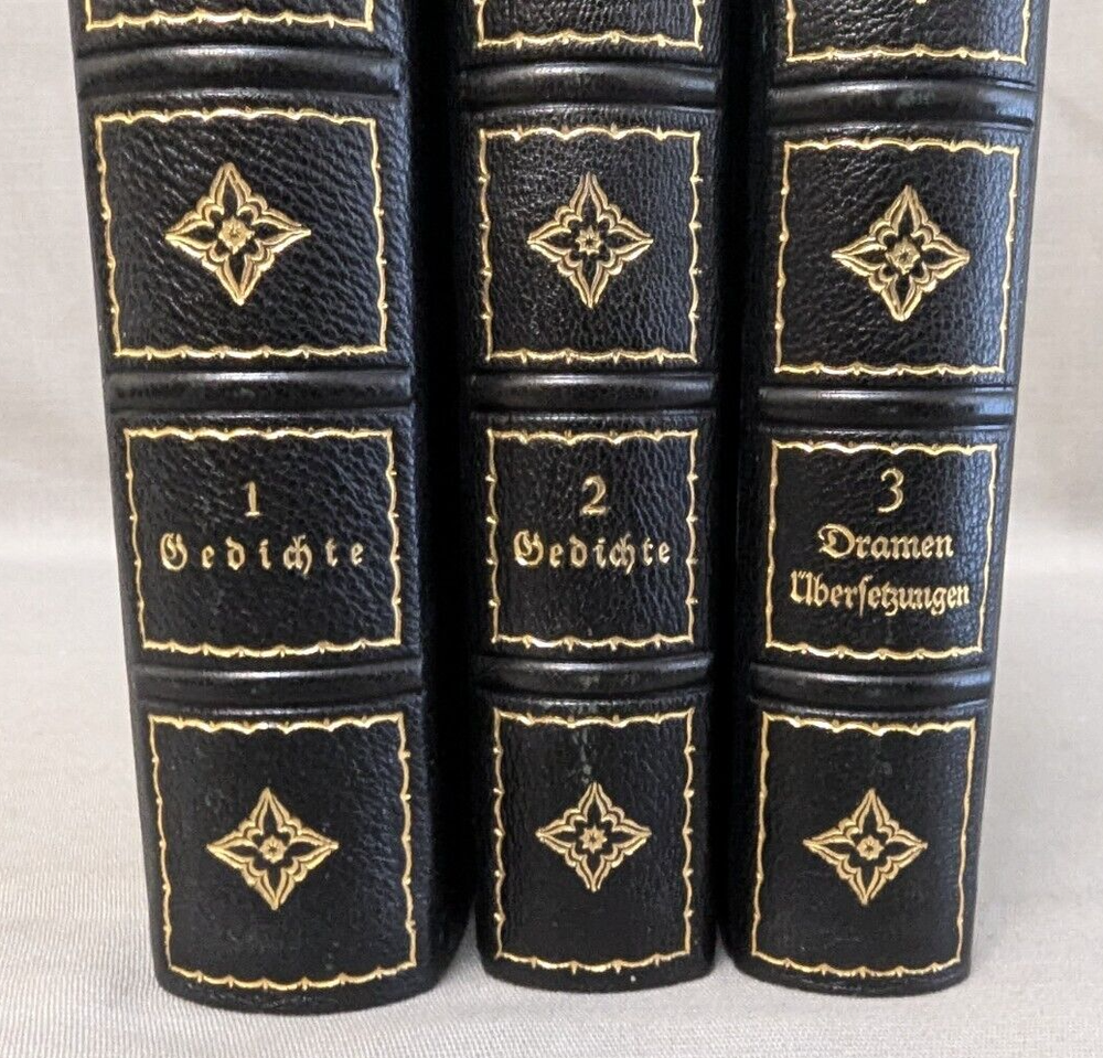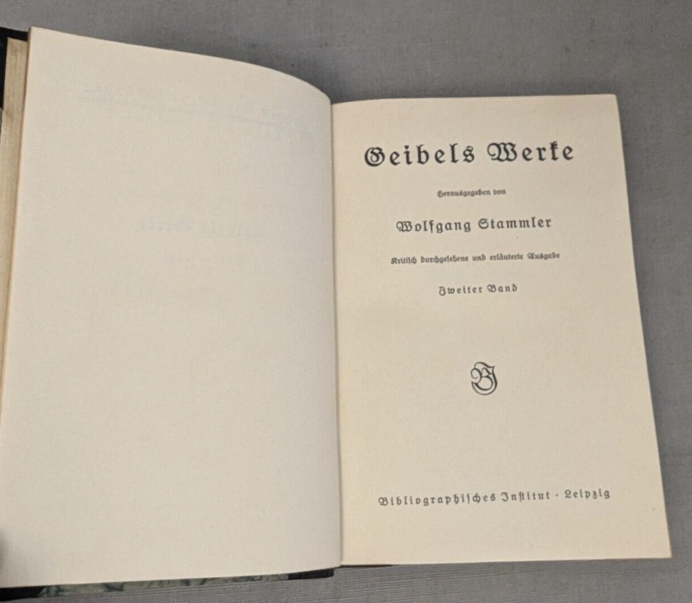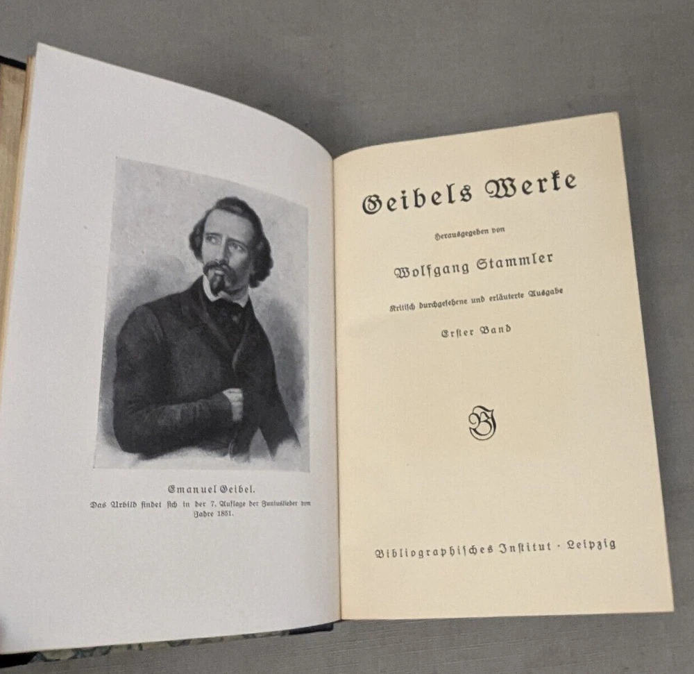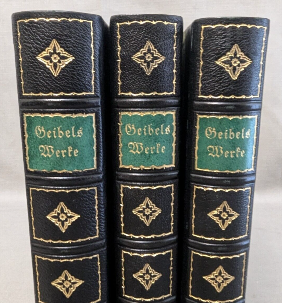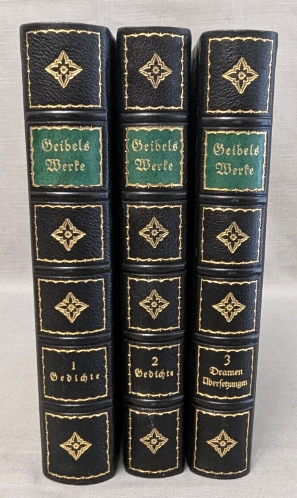 Delve into the world of classical German poetry with the Geibel's Werke Set of 3, a stately addition to any literary collection. The set features a beautifully bound leather volume with a gilded top, reflecting the craftsmanship of the early 1900s. Each poem and prose is presented in the original German language, allowing readers to appreciate the nuances of Geibel's work. This collection is an homage to the legacy of German literature and the artistry of Geibel himself. With its elegant binding and timeless themes, it serves not only as a reading piece but also a decorative item for enthusiasts of antiquarian and collectible books. A must-have for lovers of poetry and literary history. Books are in excellent condition. There is a bit of page discoloration. Please view all photos for visual condition. Please, message me with any questions, before bidding or purchasing. Thank You and Good luck! Upon receiving payment, item(s) usually ship within three (3) business days (M-F). If you need your purchase shipped faster, please message me and we will be happy to rush your purchase. Payment within three (3) days of winning the auction is appreciated! Thank you for stopping by and giving me a look! Every effort is made to describe items fairly and correctly. I will be more than happy to answer any questions or send additional photos, by email during the auction. Please look at the pictures and ask questions before bidding or purchasing. Thank you.