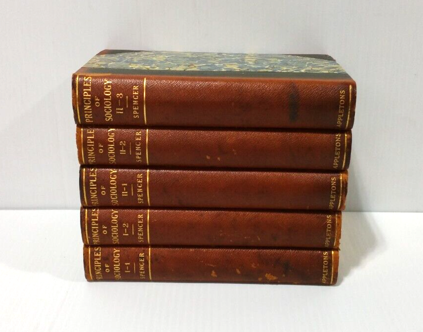 Principles of Sociology - Spencer - 1897 - 5 Volume Set Leather and board covers. Good condition for their age. Plenty of wear and staining to the leather covers and gilt edges. But the pages are tight with good bindings and no writing. Welcome to ResellRecycleReuse! We specialize in secondhand goods. Our goal is to keep as many useable items out of our landfills as we can. Please assume everything is used unless otherwise stated. New items may have coupons or codes, assume these are expired unless otherwise stated. We do not accept returns, however, if something is damaged or not as described, please contact us and we will work to correct the problem. If for any reason you are dissatisfied, please contact us directly and we will work to solve any problems. Please note, office hours are Monday-Friday. Any answers to questions sent on the weekends may be delayed until the next business day. Put us on your favorites list.....you never know what you might find!