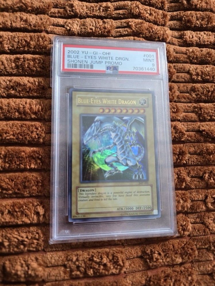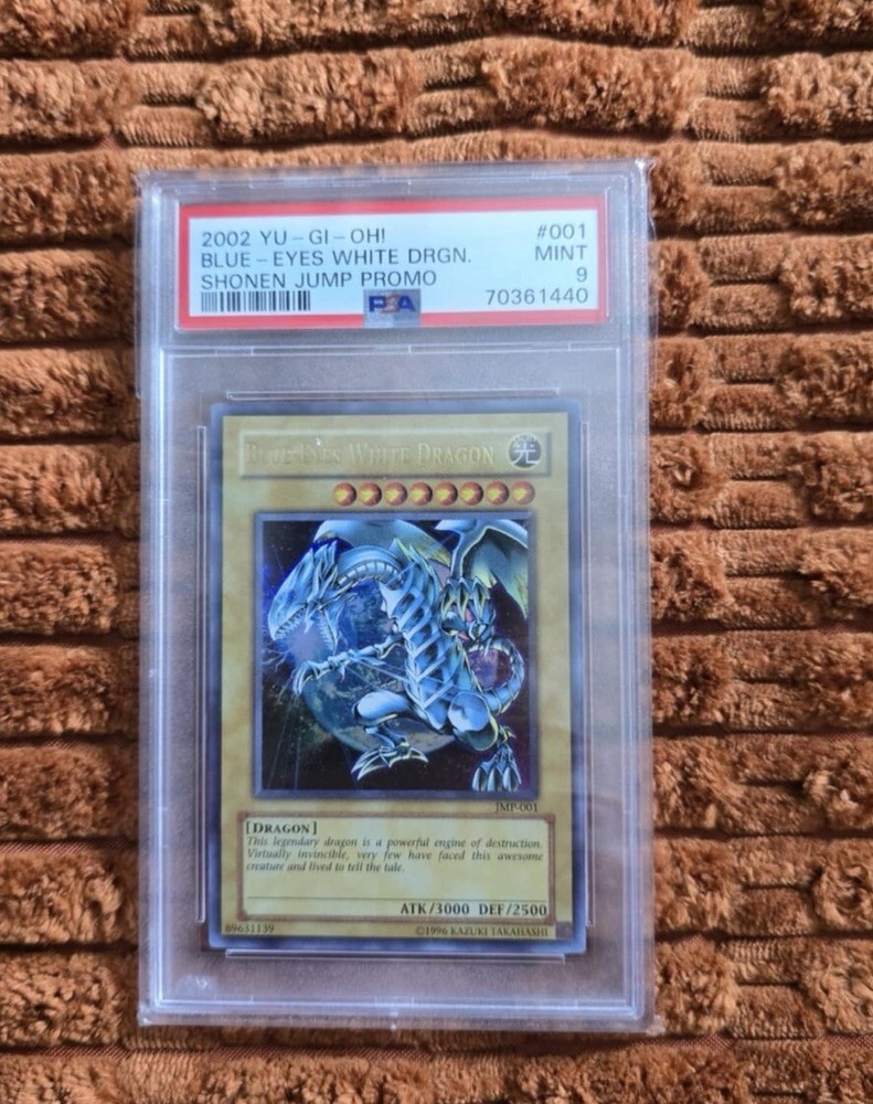 This PSA 9 Blue-Eyes White Dragon Shonen Jump Promo JMP-001 Yugioh 2002 English card is a must-have for any collector or fan of the Yu-Gi-Oh! TCG game. With its stunning gold, gem mint, full art, and extended art features, this limited edition card is a true gem. The card is made of high-quality card stock material and manufactured by Konami in Japan. It belongs to the monster card type and has the ultimate stage attribute. The card is suitable for players aged 4 and above and is a vintage 1st edition from the Jump Festa and Alternative Art categories. This card is a perfect addition to any collection and is sure to impress with its unique art and secret rare attributes.