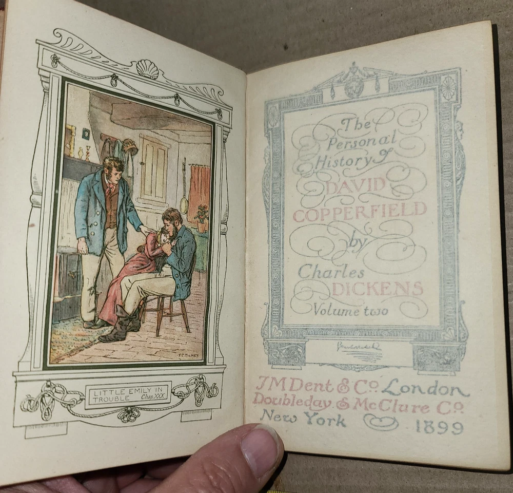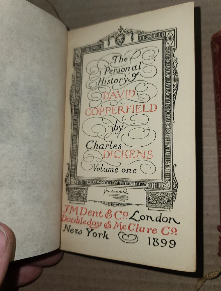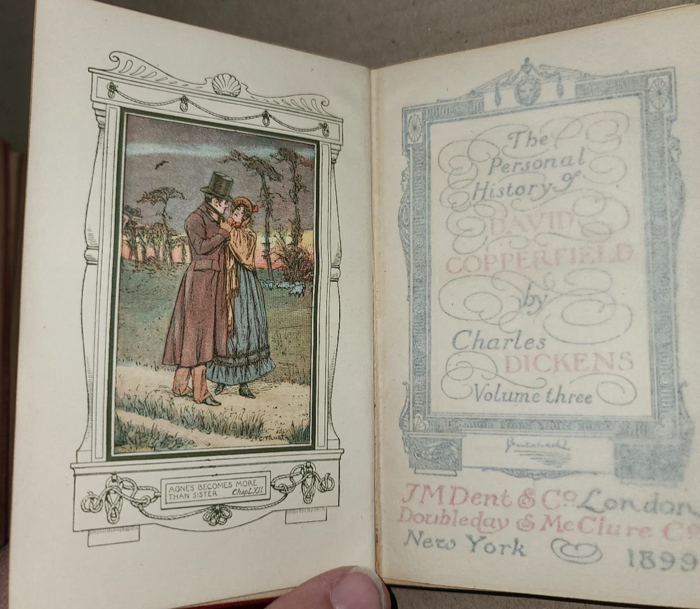 RARE 1899 “David Copperfield” 3-Volume Set by Charles Dickens – J.M. Dent Publishers – Antique Edition with Color Plates For sale is an antique 1899 edition of David Copperfield by Charles Dickens , beautifully presented in three volumes and published by the esteemed J.M. Dent & Co. , London. This edition includes one exquisite color plate in each volume , offering a rare and elegant presentation of one of Dickens’ most cherished novels. 📚 Item Details : Title : The Personal History of David Copperfield Author : Charles Dickens Publisher : J.M. Dent & Co., London Publication Year : 1899 Volumes : 3 (Complete Set) Illustrations : One color plate per volume; no other illustrations Language : English Condition : Please see photos for condition. ** Volume 3 has a loose front cover (see photo) 🔍 Background & Significance : Published by the renowned J.M. Dent , this edition reflects the craftsmanship and literary reverence of the late Victorian publishing world. Dent was known for producing collectible editions of literary classics with an emphasis on elegant design and accessibility. This version of David Copperfield is from a period when books were produced to be both read and admired. David Copperfield , often considered Dickens’ most autobiographical work, is a sweeping, heartfelt novel that follows the life of its titular character from troubled childhood to maturity. This three-volume set preserves the depth and richness of Dickens’ original text in a format that feels substantial and timeless. 🌟 What Makes This Edition Special : Original 1899 printing – now over 120 years old Complete in three volumes Features a single color plate in each volume – a unique artistic touch in a largely un-illustrated format A wonderful collectible for fans of Dickens, classic literature, or antique book design Published by J.M. Dent , a highly regarded name in fine book publishing 🎁 Perfect For : Collectors of antique literature Dickens enthusiasts Vintage decor lovers Unique and meaningful gifts for book lovers 📦 Shipping & Handling : Professionally packed and shipped with care Fast domestic shipping; international shipping available Questions? Just send a message—happy to provide more photos or details Own a piece of literary history with this stunning 3-volume David Copperfield set—a true Victorian treasure from one of the most beloved authors of all time.