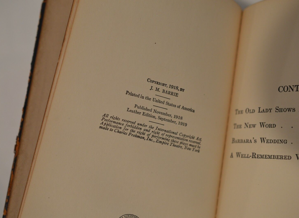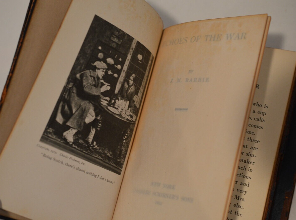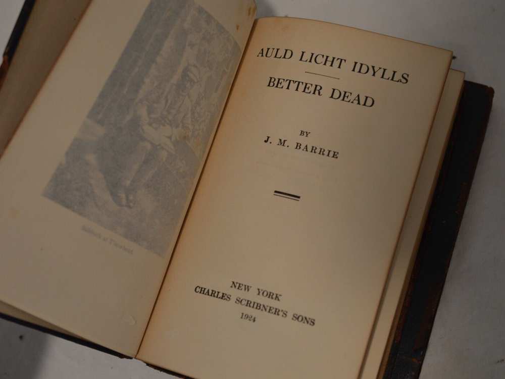 For sale is an antique collector's set of books! For works by J.M. Barrie. Includes: Echoes of the War, Auld Licht Idylls, Better Dead, and Peter and Wendy. Comes with the original case. Extremely rare set! Some wear to the leather bindings of the book, but in good condition. Please see photos for condition and measurements. Message with questions! Check out my other items! :) If you have a problem with your purchase, please contact me before opening a case or requesting a return. Thanks!