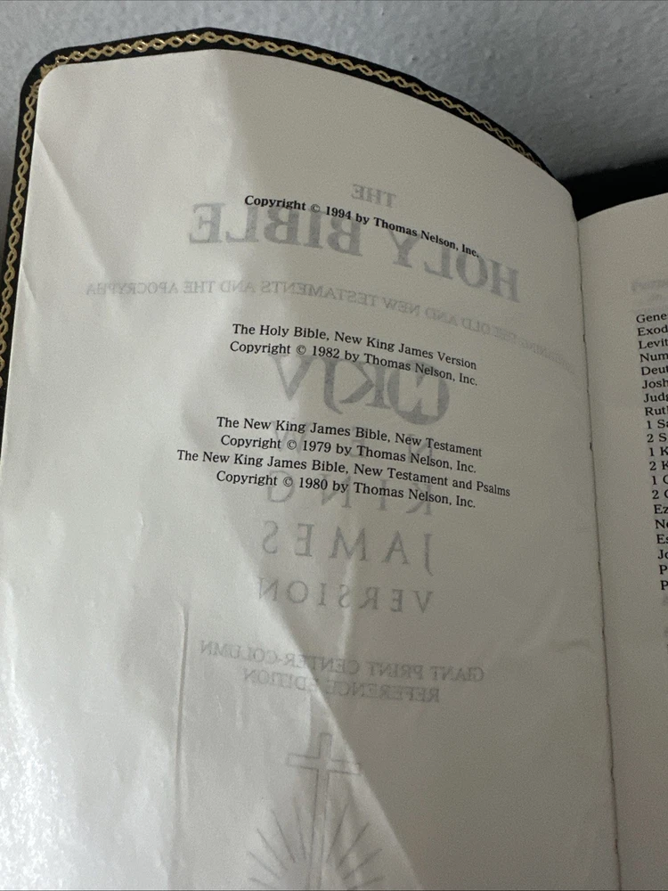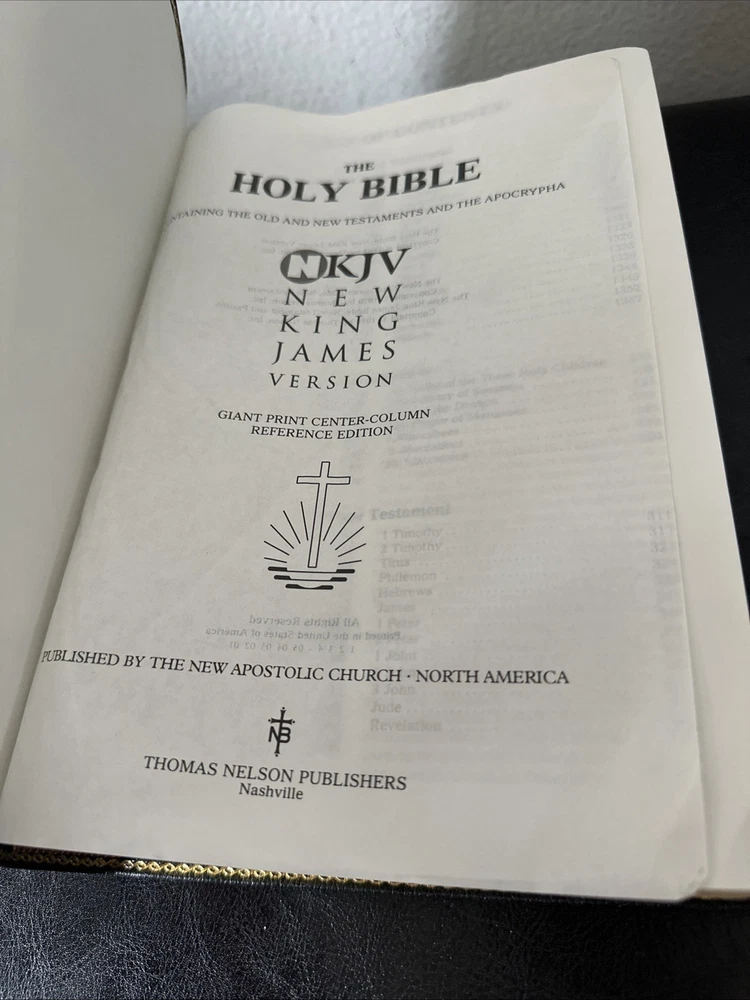 RARE NKJV HOLY BIBLE w/ Apocrypha Reference Edition 1994 Thomas Nelson Leather Some wear as pictured. In good condition....