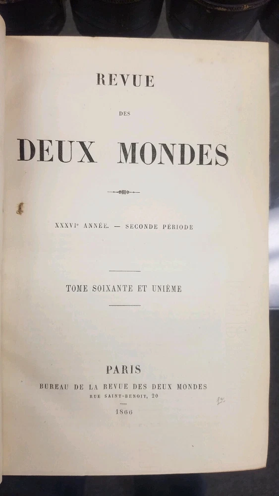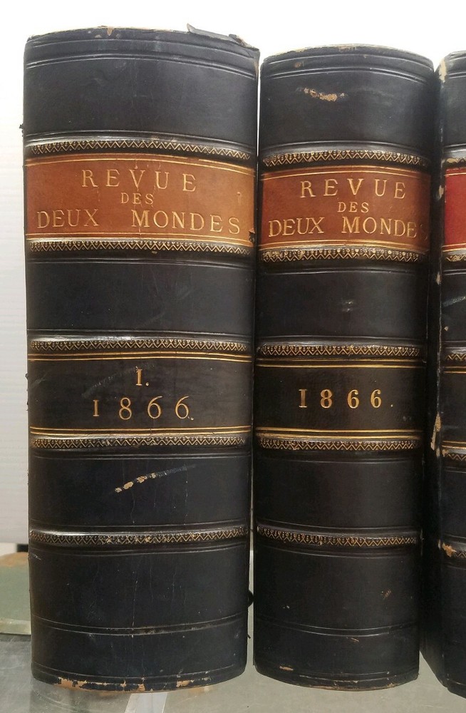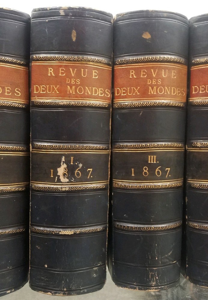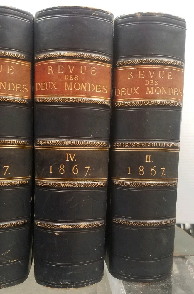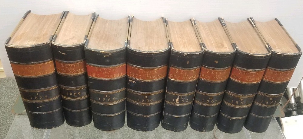 You are bidding on a: EXTREMELY RARE! Set of 8 Revue des Deux Mondes 1866 & 1867 Antique FRENCH LEATHER BOOKS These books are all in very good condition. Please do not be afraid to make your best offer. You may end up with the item that you want for the price that is right for you. Please examine all photos as they are part of the item description. I will ship FREE to anywhere in the Continental USA !!! Please note my 30 day return policy, see my 100% satisfaction rating, read my buyer feedback and bid with confidence. Communication If you have a problem or question regarding your transaction please contact us before leaving any type of feedback. We will work with you to resolve any problem you may have. PLEASE BE CAREFUL NOT TO ACCIDENTALLY OPEN A CASE.