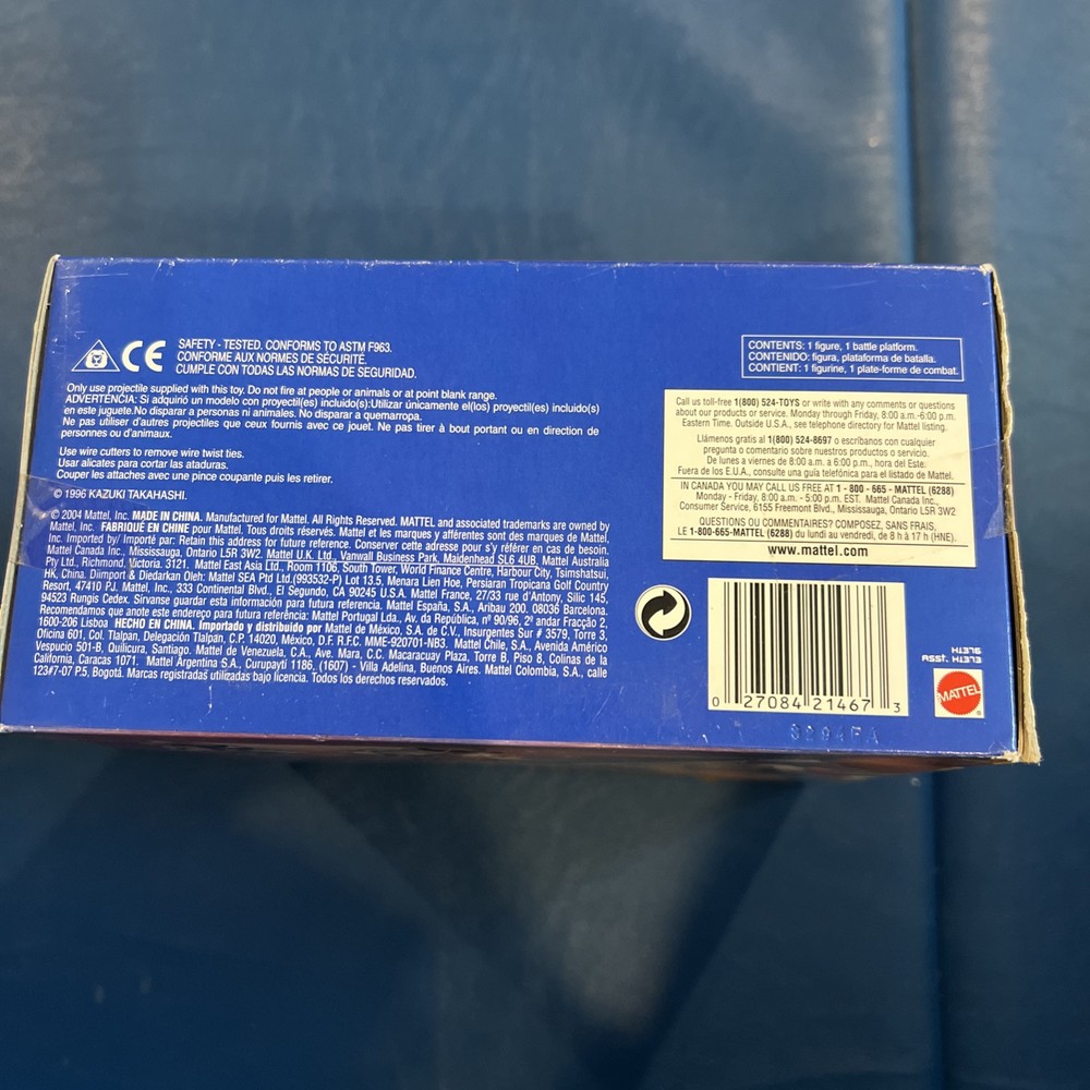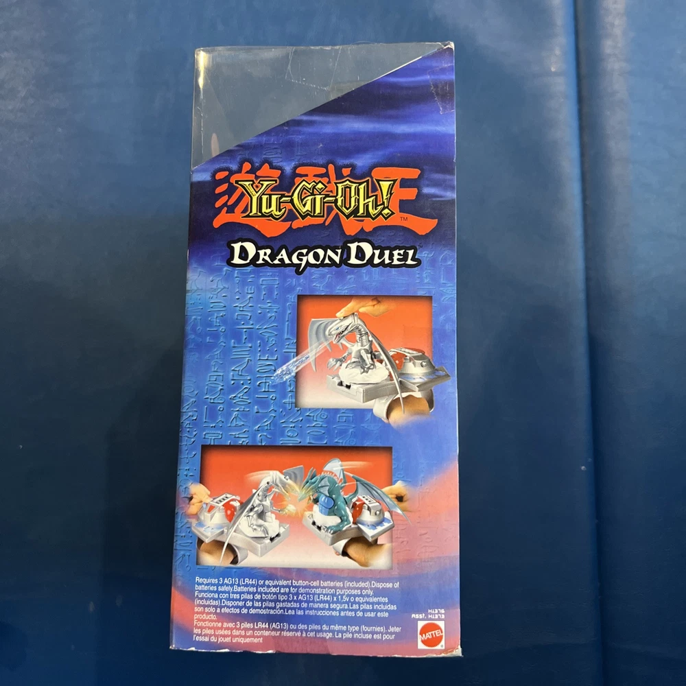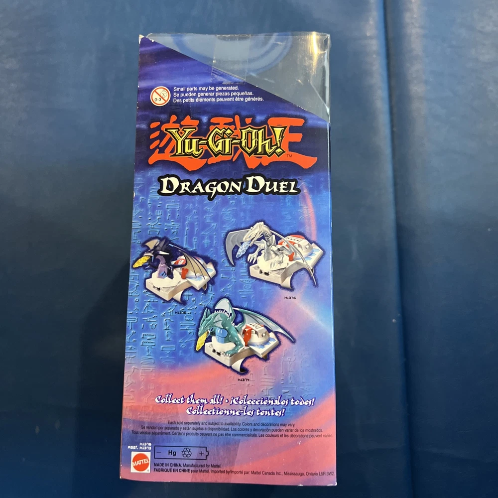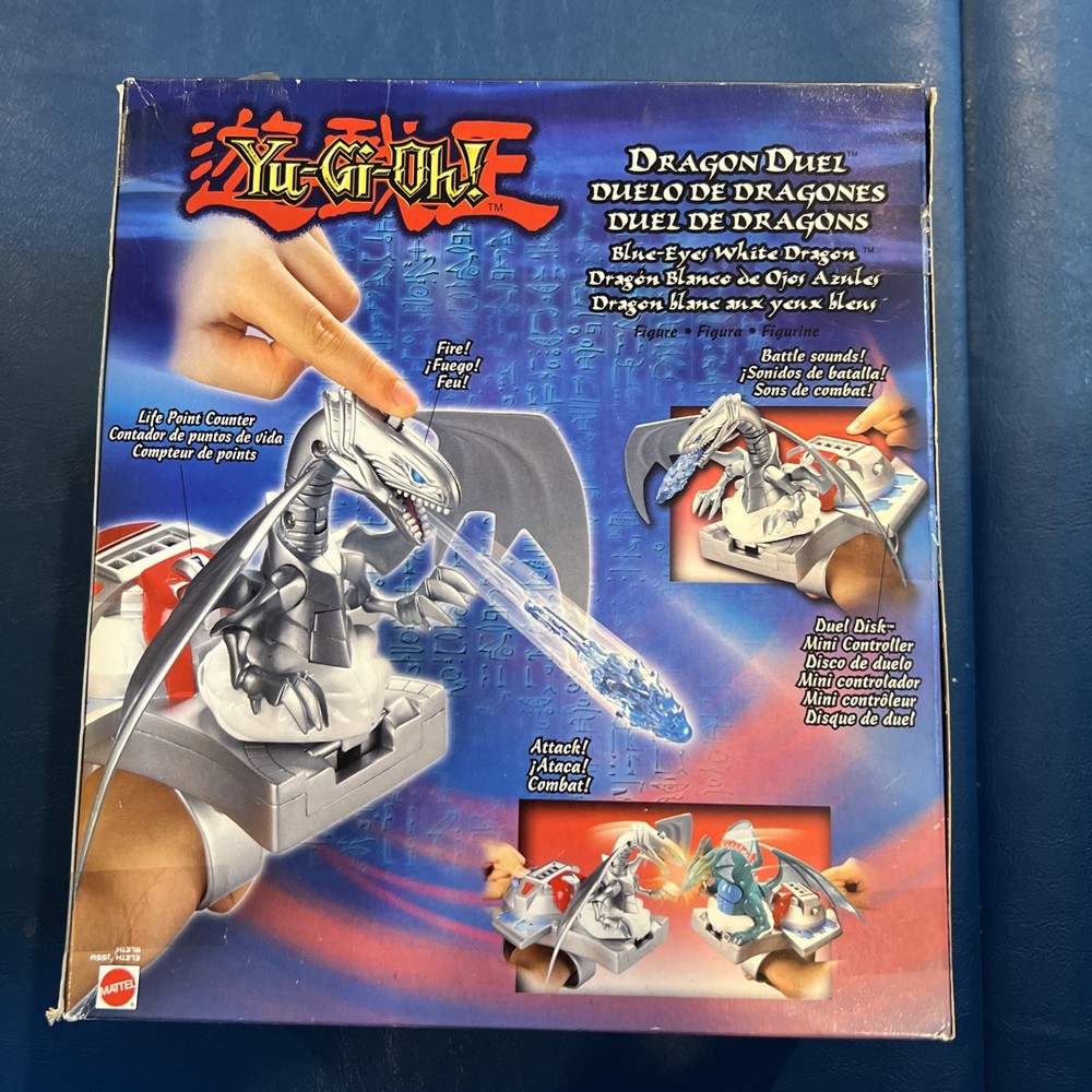 This is a rare new, unopened, Yu-Gi-Oh Blue Eyes White Dragon action figure from 2004, made by Mattel. The figure is new in its original boxed unopened packaging, representing the character from the Yu-Gi-Oh! TV show and franchise. It is a collectible item featuring the iconic Blue Eyes White Dragon from the Dragon Duel series.