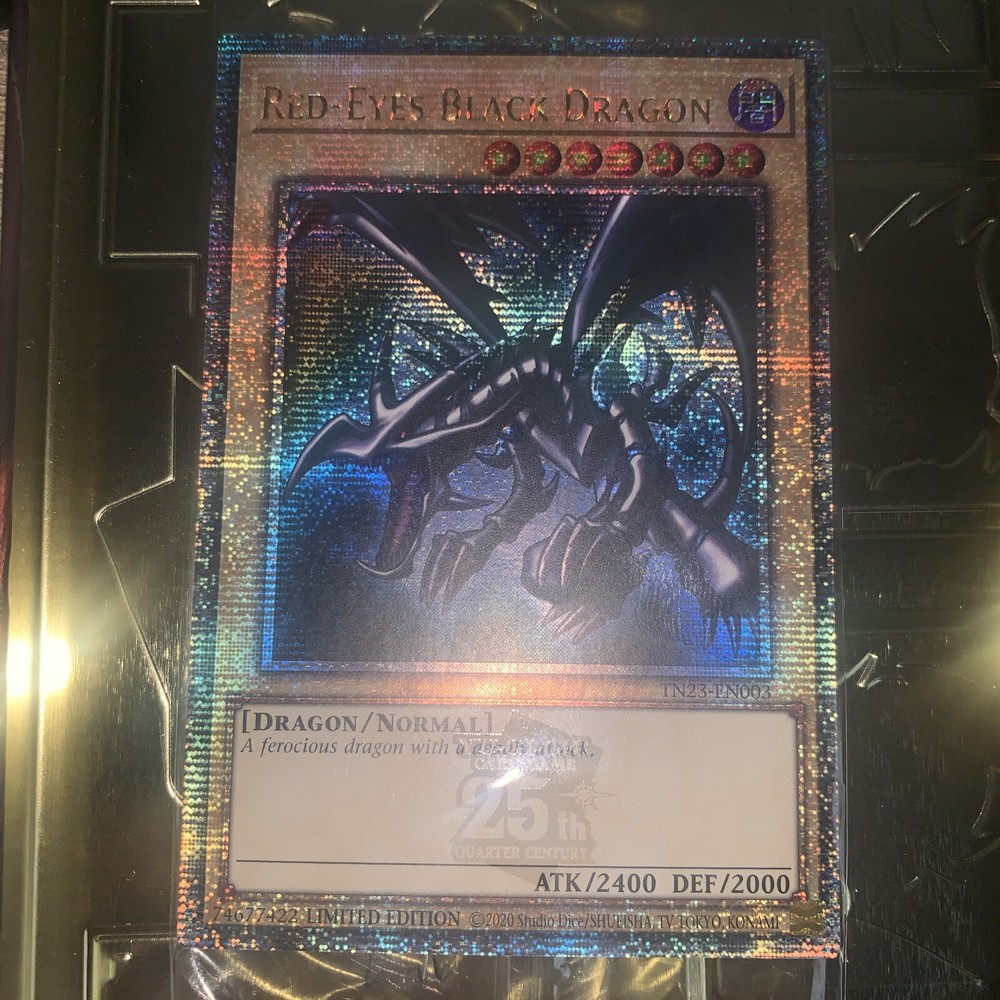 This limited edition Yu-Gi-Oh! TCG card features Joey Wheeler's Red Eyes Black Dragon character, with a Secret Rare rarity and English language. The card is manufactured by Konami and is part of the Collectable Card Games category, specifically the CCG Individual Cards and Collectables subcategories. Its card name is TN23-EN003 PROMO and it comes sealed in its original packaging. The card is perfect for collectors and fans of the Yu-Gi-Oh! TCG game, and is a must-have for anyone who wants to complete their collection. Its Dragon creature/monster type and impressive features make it a valuable addition to any collection. Get your hands on this rare and highly sought-after card today!