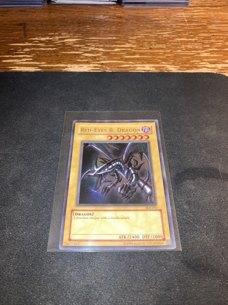 RED EYES BLACK DRAGON YUGIOH HOLO HEAVY PLAY RARE HOLO SDJ-001. Edges and corners have white spots Top right corner has fold bend F and B See picture Clean foil No scratches Rare card
