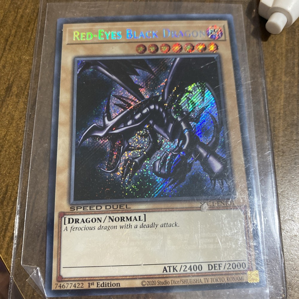 This Red-Eyes Black Dragon looks absolutely stunning in Prismatic Secret Rare! The card arrived in perfect mint condition, carefully sleeved and top-loaded for protection. The colors really pop, and the holographic effect is even better in person. Super fast shipping and great packaging—definitely a must-have for any Yu-Gi-Oh! collector or Red-Eyes fan. Highly recommend this seller!
