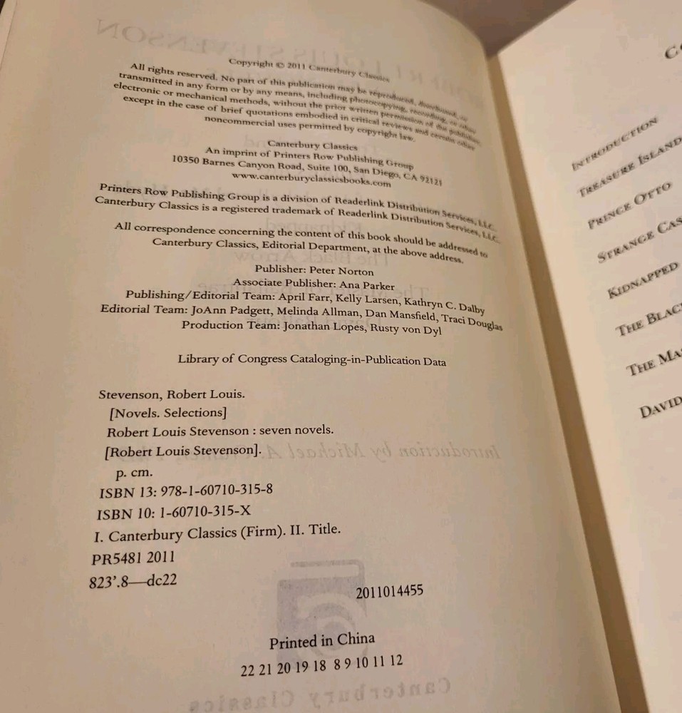 ROBERT LOUIS STEVENSON SEVEN NOVELS 2011 Canterbury Classics Hardcover Leather ? Great Copy. Never Read ? Pretty sure the cover is real leather. 2011. See images posted and use close up feature. Thank you for your interest in my listed item. By looking at my store you can see, I sell a variety of items. Please read further to see details on this item. If you have any questions about any of my items, please email me before purchasing. PLEASE READ LISTING FULLY & VIEW ALL POSTED IMAGES CLOSELY . Images poste d represent the condition of the item. I do my best to describe things accurately in the condition section and post clear pictures of the item, however at times I might miss something. Please note: It Is Very Important to Note, that most of my items I sell unless stated otherwise are used and preowned. Please take that into consideration when thinking of purchasing. Since most of these items were not owned by me, I do not know their history - for example I do not know if they came from a smoke and / or pet free environment. Regarding Shipping : In most cases items are shipped USPS Priority or Ground Advantage based on calculated shipping. When possible, I use a flat rate envelope (usually padded) from USPS. Most times books and other media are shipped via MEDIA MAIL. On rare times I might use FEDEX or UPS. I will combine shipping if asked and if possible. I take a good amount time to pack my items carefully, so they arrive in the condition they were in when shipped. Trading cards if under 3 ounces are ship by EBAY Standard Envelope Rate. International Shipping is only via eBay Global Shipping Program. Some items I do not make available for international shipping. If you would want your items to ship any other way, please let me know. In most cases there is no local pick-up or local delivery whatsoever. Please Note: Concerning packing material, I use mostly bubble wrap and some newspaper / packing paper and maybe an added piece of cardboard for protection of the many fragile items I sell. All the bubble wrap, shipping boxes and envelopes I buy new. (A few times maybe I will use a used box). USPS Boxes I get via USPS. I take special care in how my items are packed and how the package looks when shipped. Dishes / Mugs, Cups (fragile, metal or plastic) / Glassware / Bowls / Platters, plates, Silverware or similar items: Please hand clean very thoroughly (unless it is noted it can also be put in a dishwasher) when received. Outside bottom of item(s) might be discolored and / or show wear and there could be some old stickers residue. On any mugs or tumblers that have travel lids, please test that lid works properly before using. Also mugs or other dishes might have gold trim. Many items with gold trim or logos probably cannot go in the dishwasher or microwave. Mugs could also have stir marks on the inside bottom. With silverware they could have stains and /or tarnish from age. These need to be cleaned when received. Also, since many items are older, they might show crazing and I do not know if they are dishwasher or microwave safe. Plus, there is no way to know if such older items are lead free or if similar materials were used (that are not used any longer) in manufacturing years ago - hence these items are sold as is. Ceramic Display Steins / Glasses and Collectible Display Plates/ Mugs: Please hand clean thoroughly when received. Like dishware they might have similar types of wear, and many have gold like trim. These are just display items. Ashtrays: Please wipe down clean or hand clean items when received. Outside bottom of item might be discolored or show wear or old sticker residue. Candles: I only sell these if the wick shows it has never been lit. Please note that these will be considered new even if the lids are not sealed or previously owned. Please REAL ALL WARNINGS and INSTRUCTIONS for SAFE USE of these candles. These are not returnable. Trading Cards: Please see all photos of cards and use closeup feature to see any flaws. These cards are not graded professionally, and I do my best to give an accurate condition. Card(s) will be in a penny sleeve and a top loader with blue painter tape on top. If under 3 ounces it be sent via Ebay Standard Envelope rate. Metal / Plastic / Ceramic / Fabric / Craft/ Wood Made Items (Home Décor) which includes holiday decoration / ornaments: Wipe down clean when received. These are mostly display items and are generally Home Décor items. This includes framed items like photos and paper printed or canvas artwork. Fabric Craft type of work and kits. Also includes items like candle holders. (Please use with caution and proper use and read all safety warnings.) Books, DVDs CDs, VHS, Vinyl LP records, Software, magazines, and other types of media: Many books / magazines are old / vintage and might have spotting, ripped dust jackets, inside dust jacket tape repairs, old sticker residue, hard boards that have some discoloring and spines/gutters that have wear. Some of the pages might have some yellowing. Many books / LPs due to age might have a slight musty smell. With DVDs, CD?s, audio cassettes, 8-Tracks and vinyl LP records, that are not new and sealed, they can sometimes have wear to the cases/ sleeves and discs / records could have visible surface marks. With vinyl records I do not grade them in anyway and they will only be shown in photos. They could skip or not play properly. However, I would not try to sell a vinyl record if to me it looked overly worn or scratched. All preowned tapes (cassette and 8-track) and vinyl audio items usually are not tested. With DVDs please be aware of the ratings for each DVD movie (since I tend to sell these in lots at times.). Buyer responsible to make sure from listing that DVD and Blu-Rays can play for their region. I do not accept returns for media items in most cases. Signed or Autographed Items: These items might or might not have a C.O.A. but will be noted in the listing if they do or not. Car / Automobile Pa