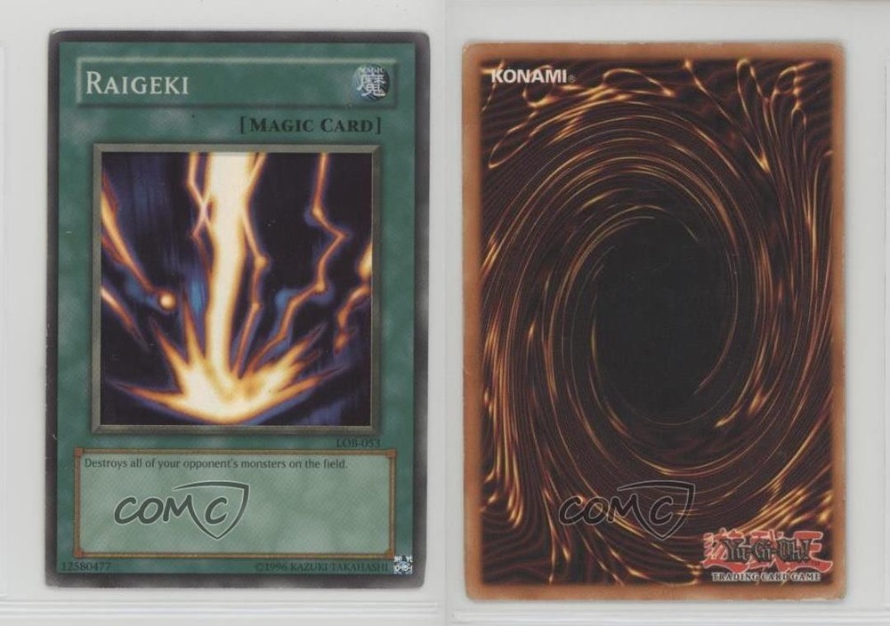 2002 Yu-Gi-Oh! Legend of Blue Eyes White Dragon - [Base] #LOB-053 Raigeki (SR) COMC Item: 187012541 - YuGiOh Card - Featuring Raigeki Search for more: 2002 Yu-Gi-Oh! Legend of Blue Eyes White Dragon Search for more: 2002 Yu-Gi-Oh! Legend of Blue Eyes White Dragon - [Base] View all of our Listings Auctions Buy It Now About Us Located in the beautiful Pacific Northwest, COMC (Check Out My Cards) is the world's largest consignment service for trading card singles. More than 10,000 people have used our consignment service to list over 50 million trading cards. Find out how we can help you consign your items on eBay by contacting us through eBay messaging. COMC -- "The Safe & Easy Way to Buy & Sell" Raw Condition for Modern Cards Unless otherwise noted, raw modern cards are listed in Near Mint-Mint condition or better. A NM-MT card appears to be Mint at first glance, but upon closer inspection, may exhibit some of the following: minor print defects (e.g. roller marks, print line, dimple), minor scratches, slight edge wear, and slight corner wear. Centering is clearly visible in the images provided and does not factor into our condition assessment. Raw Condition for Vintage Cards Unless otherwise noted, raw vintage cards are listed in Excellent condition or better. An EX card may exhibit some of the following: minor rounding of corners, surface wear, print defects, light scratches, and slight edge wear/chipping. Centering is clearly visible in the images provided and does not factor into our condition assessment. Domestic Shipping Combined shipping for multiple items is available. To receive combined shipping, please ensure all desired items are in your eBay shopping cart before proceeding to checkout. eBay limits orders to 40 items per order. We automatically combine multiple orders placed on the same day. If you place multiple orders on the same day, please contact us to request a refund of applicable shipping costs. Signature confirmation may be required on invoices over $400. All cards are protected and shipped securely. International Shipping COMC offers eBay's International Shipping (EIS) for international orders under $2,500* (see country exceptions below). All duties and import fees are paid at checkout; in the rare event that there are additional import fees upon delivery, these are borne by the buyer. EIS packages route through a shipping hub in Erlanger, KY before shipping to their final destination. Please note that EIS does not allow for combined shipments. The shipping rates are determined by eBay and cannot be adjusted. *Maximum sale price exceptions: Colombia, Kuwait ($2,000); Taiwan ($1,539); Chile, Costa Rica, Guatemala, Honduras, Trinidad and Tobago ($1,000); Antigua and Barbuda, Aruba, Belize, Dominica, Grenada, Philippines, Saint Kitts and Nevis, Saint Lucia, Montserrat, Turks and Caicos Islands ($500); Dominican Republic, El Salvador ($200). Please request a shipping quote through eBay messaging for orders that exceed the maximum sale price supported by eBay's International Shipping. You will be responsible for all duties and import fees for international orders shipped outside the EIS. All cards are protected and shipped securely. Payment COMC does not accept offers on our cards through our eBay storefront. COMC utilizes eBay’s managed payments system. If you are experiencing difficulties making a payment, please contact eBay for assistance. Return Policy Returns are only accepted on the rare occasion the item is not as described. If you are making a return, please initiate the return process through eBay so a mailing label can be provided for you. Prior to listing, our expert team carefully assessed this item to represent it accurately. Please review the description and high-definition images prior to purchasing to ensure this item meets your satisfaction. We welcome you to contact us if you have further questions about this item. Trust and Integrity COMC carefully assesses each item consigned to us to prevent fraudulent items from entering the marketplace. If you believe an item offered on COMC may be fraudulent, please contact us with details so we can investigate the issue. Items we determine are outside our supported items policy may be removed. Last Modified: 6/7/2025 3:05:58 AM PDT