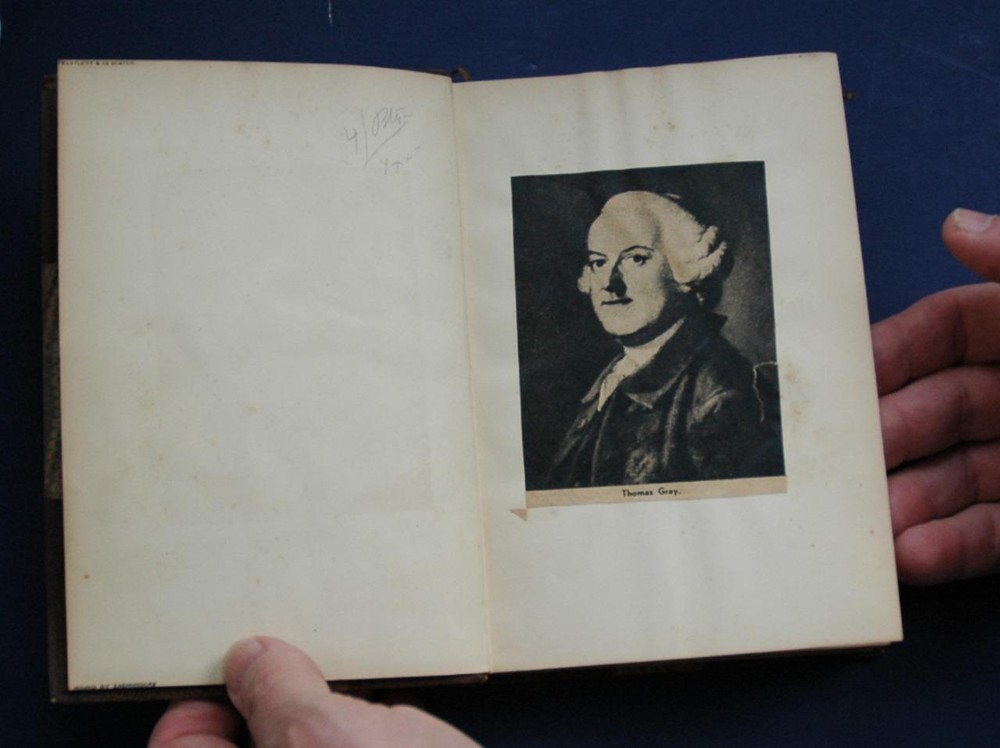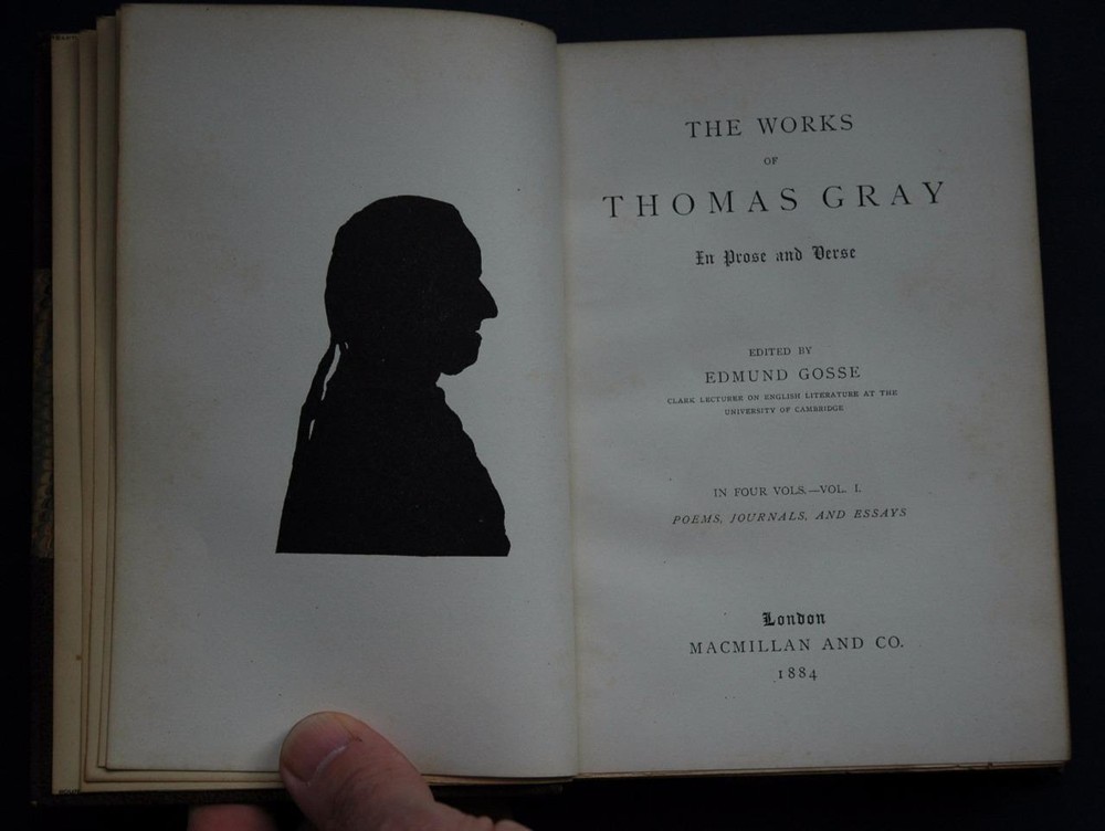 Offered For Sale is an 1884 4 Volume Set of "The Works of Thomas Gray, In Prose and Verse" - volume I : Poems, Journals and Essays - volume 2 : Letters I - volume 3 : Letters II - volume 4 : Notes on Aristophanes and Plato- Edited by Edmund Grosse - published by London MacMillan and Company - incredible condition for their age - brown leather over half marbled boards - other than very slight edge wear, these book are outstanding, and look to have been seldom handled, yet stored with care - volume 1 has a cutout picture of Gray pasted to an inside blank page - all have tight binding, clean pages and no writing in books - each volume has a book plate on inside endpaper - you wont find another set in this shape ! Rare 1884 4 Volume Set of The Works of Thomas Gray Leather Excellent Condition Rare 1884 4 Volume Set of The Works of Thomas Gray Leather Excellent Condition Click images to enlarge Description Offered For Sale is an 1884 4 Volume Set of "The Works of Thomas Gray, In Prose and Verse" - volume I : Poems, Journals and Essays - volume 2 : Letters I - volume 3 : Letters II - volume 4 : Notes on Aristophanes and Plato- Edited by Edmund Grosse - published by London MacMillan and Company - incredible condition for their age - brown leather over half marbled boards - other than very slight edge wear, these book are outstanding, and look to have been seldom handled, yet stored with care - volume 1 has a cutout picture of Gray pasted to an inside blank page - all have tight binding, clean pages and no writing in books - each volume has a book plate on inside endpaper - you wont find another set in this shape ! Shipping Items to continental US will be send via USPS media mail, Fed Ex Ground, Or Parcel Post unless other arrangements are made. Handling time is up to 4 business days prior to shipping. There are many expenses involved in shipping your product safely including padded mailers, bubble wrap, peanuts, tape, FRAGILE stickers, and in most cases insurance since insurance is now seller's responsibility. Understand that shipping costs may reflect a charge for these items. It is also sometimes difficult to estimate shipping costs before the item is actually packaged. If you feel you have been overcharged, please contact me before leaving negative feedback. If there is a large discrepancy, I will make an adjustment, often before you ask! Terms of Sale Full refunds are available if not satisfied. Item must be returned in same condition as shipped. Kindly contact me immediately should you in any way be unhappy with your purchase, as I will make every effort to correct the situation, as evidenced by my feedback track record. Images sell! Get Supersized Images & Free Image Hosting Create your brand with Auctiva's Customizable Templates. Attention Sellers - Get Templates Image Hosting, Scheduling at Auctiva.com.